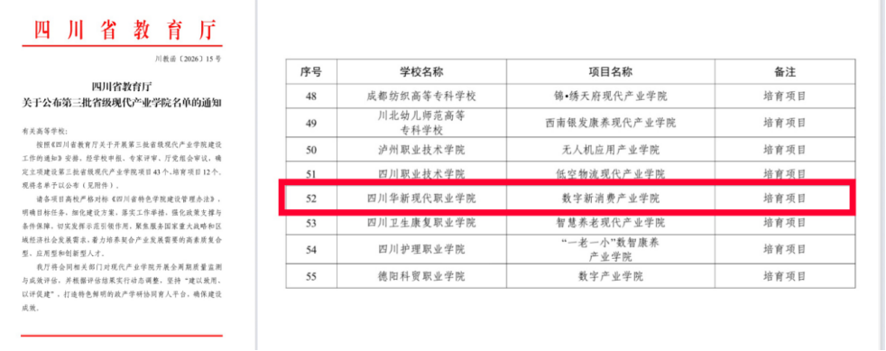 学院“数字新消费产业学院”近日成功获批四川省第三批省级现代产业学院培育单位,成为学院首个省级现代产业学院建设点。该学院依托数字经济学院数字新消费供应链专业群,与四川省长江集团紧密合作,创新“真实项目进课堂、企业导师同育人”的培养模式。