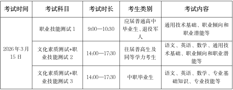符合以下免试条件的考生在单招考试前向学校申请。其中,职业技能特长申请免技能测试的考生,须在2026年3月4日17时前,将本人身份证及获奖证书的原件和复印件交到学校招生就业处办公室。