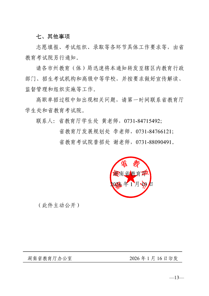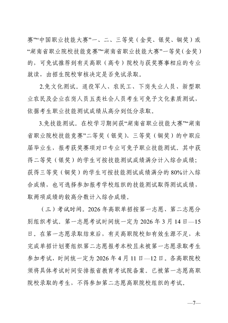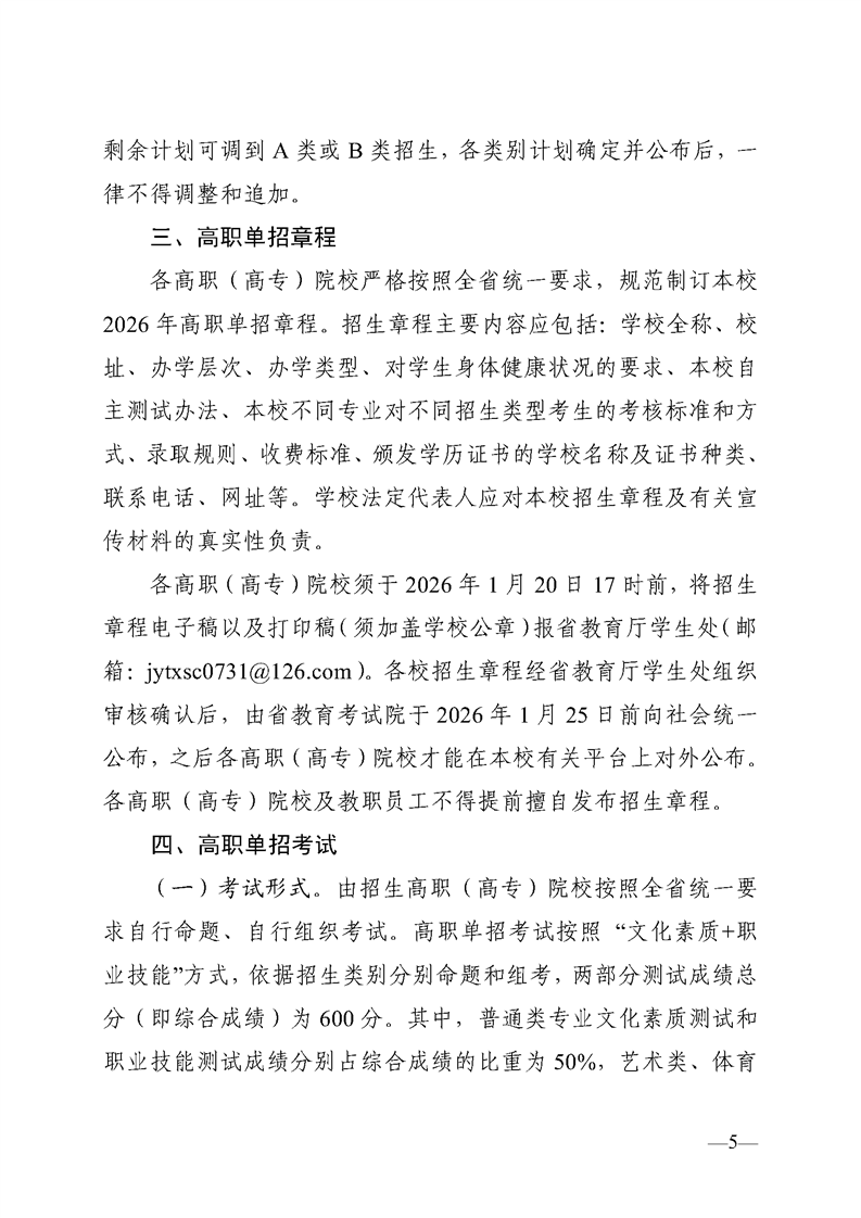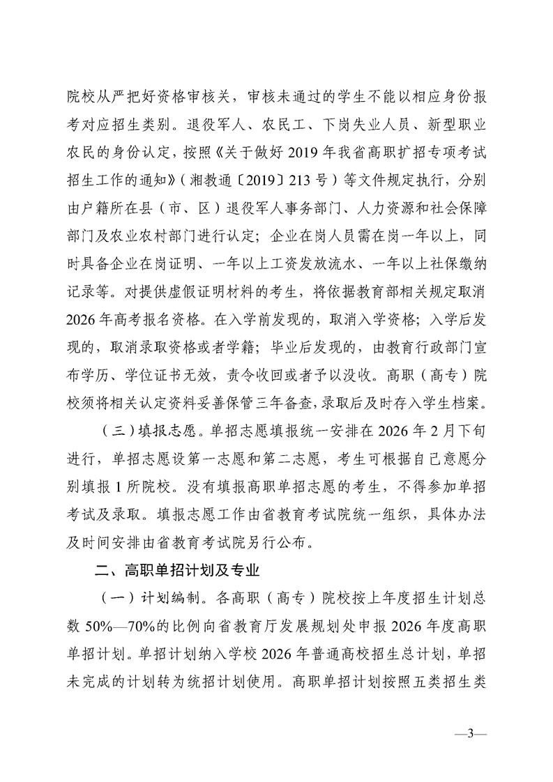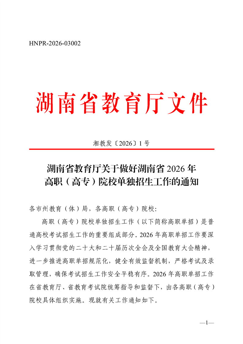 关于做好湖南省2026年高职(高专)院校单独招生工作的通知