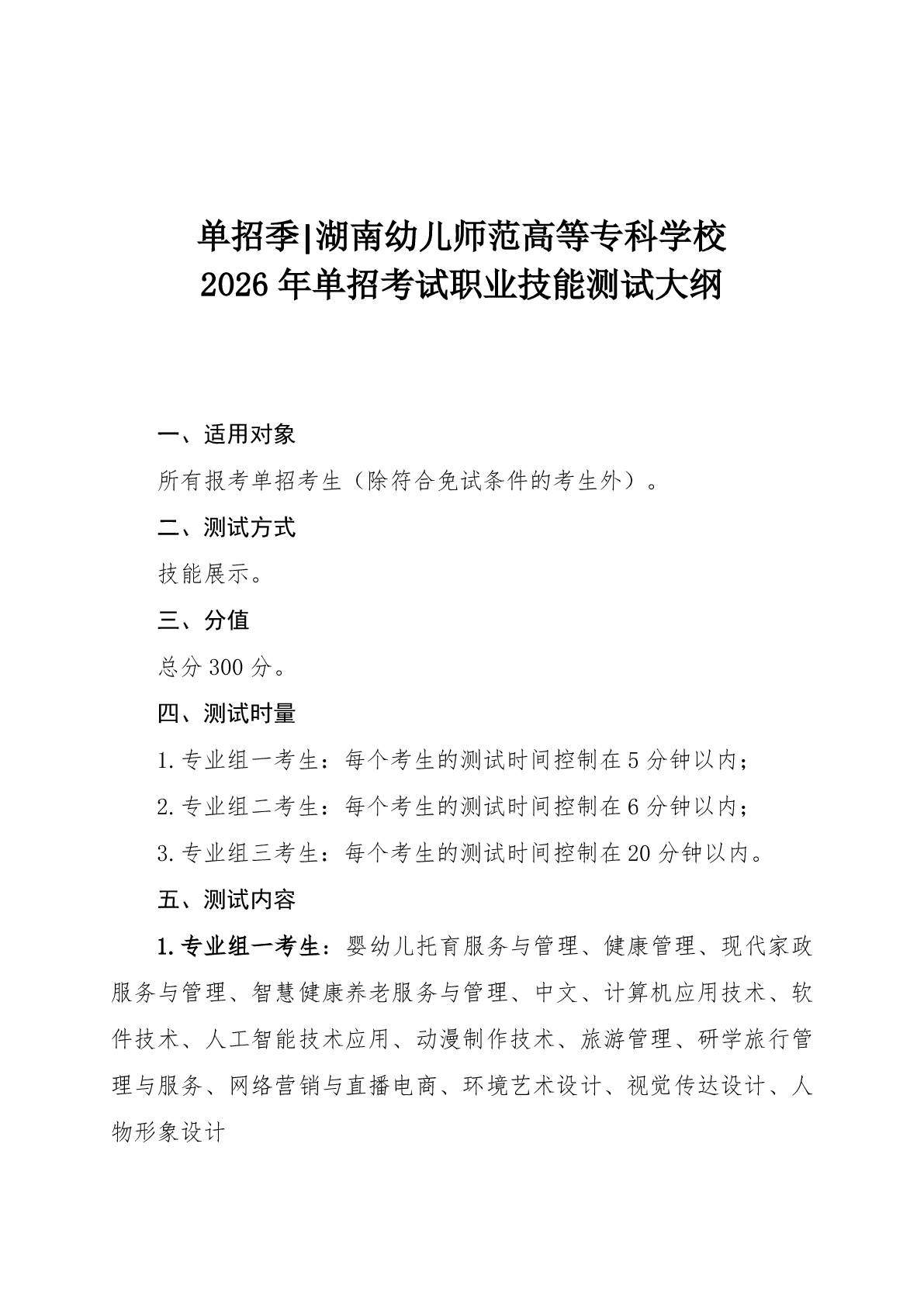 单招季 湖南幼专2026年单招考试职业技能测试大纲