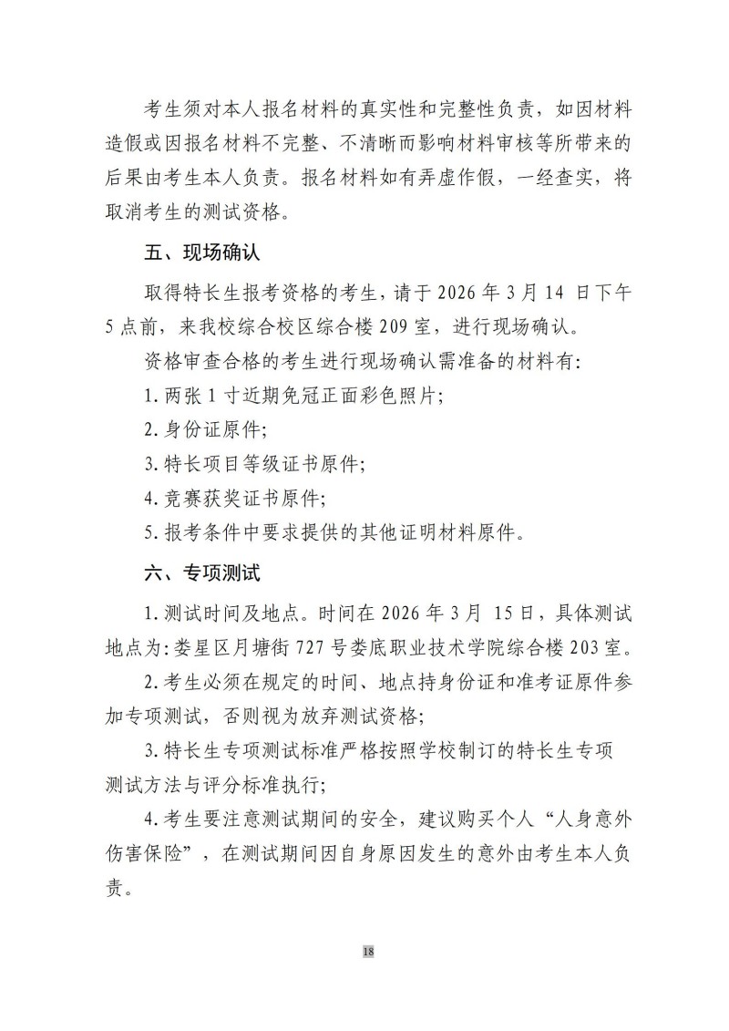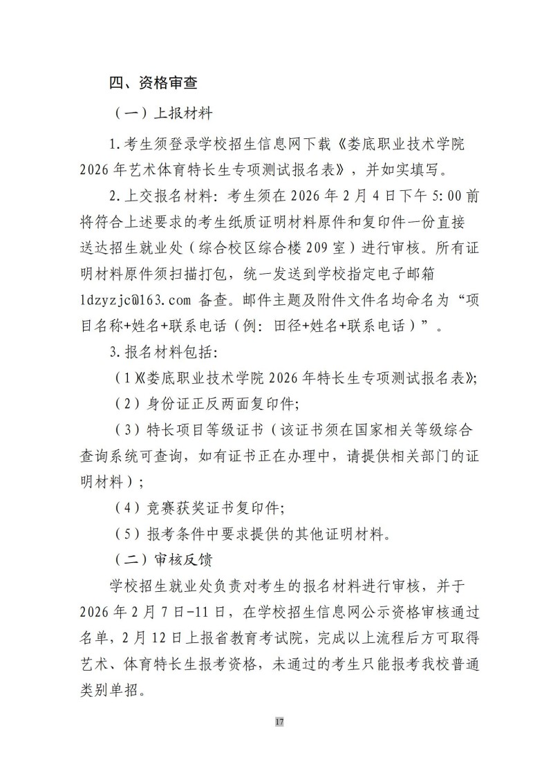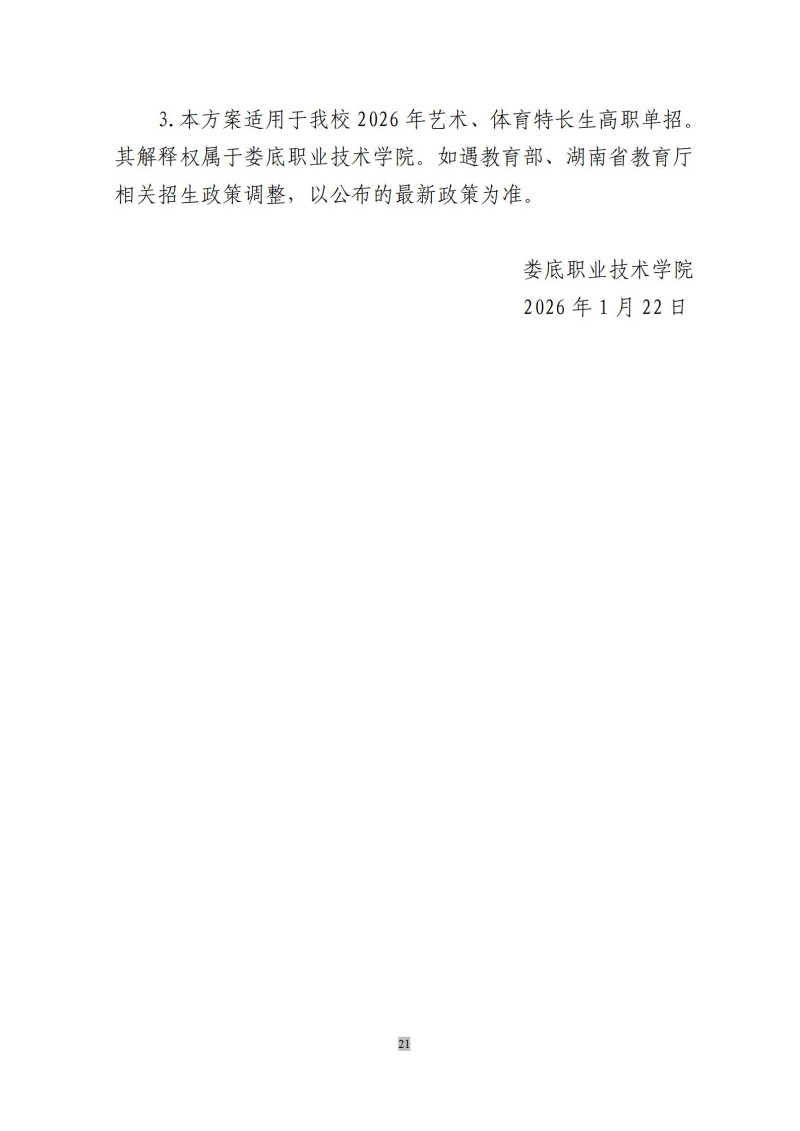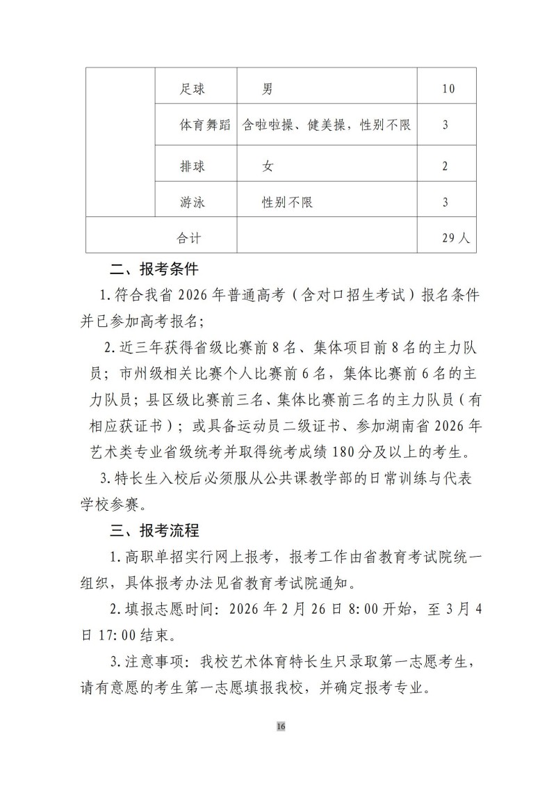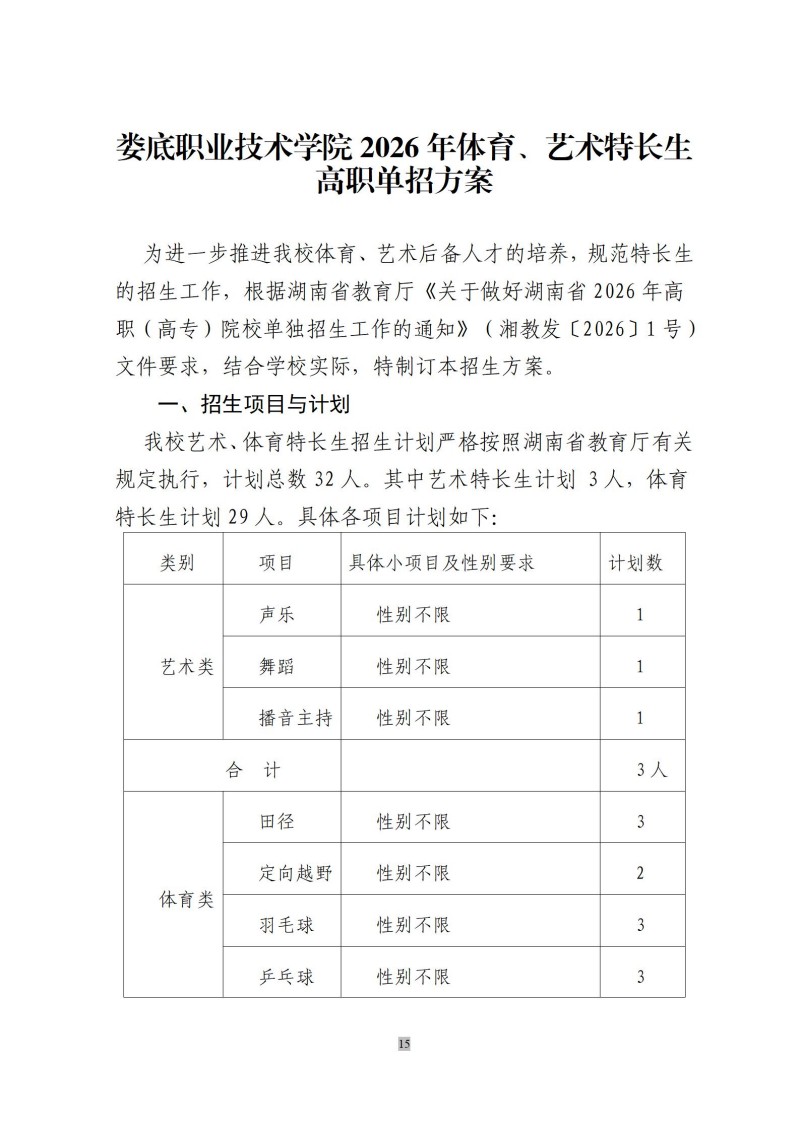 娄底职院2026年体育、艺术特长生 高职单招方案
