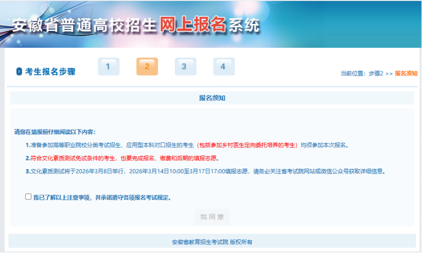 2. 仔细阅读报名须知,阅读完毕后点击左下角小方框“打勾”,然后点击“我同意”进入报名页面。