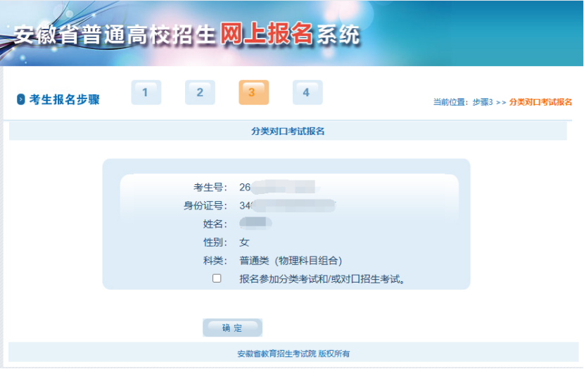 3. 核对个人信息无误后,在下方小方框“打勾”,然后点击“确定”确认参加报名。