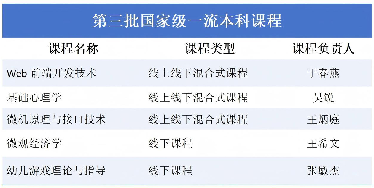 8月,教育部发布《关于第三批国家级一流本科课程认定结果的公示》,滁州学院Web前端开发技术、基础心理学、微机原理与接口技术、微观经济学、幼儿游戏理论与指导等5门课程上榜,至此学校获认定课程已达9门,居全省同类高校首位。今年学校获省级教学成果奖10项,其中特等奖1项、一等奖2项、二等奖7项。目前滁州学院已通过工程教育认证专业3个、师范二级认证专业1个、长三角新文科教育专业认证1个,认证专业通过数量稳居省内同类院校前列。