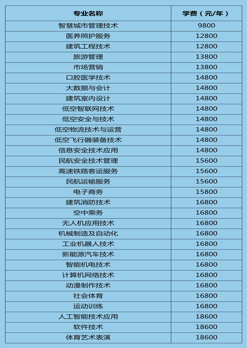 2.E类计划20人,民航运输服务专业4人;动漫制作技术专业4人;新能源汽车技术专业4人;电子商务专业4人;运动训练专业4人。考生可在上述专业范围内自行选择报考专业。