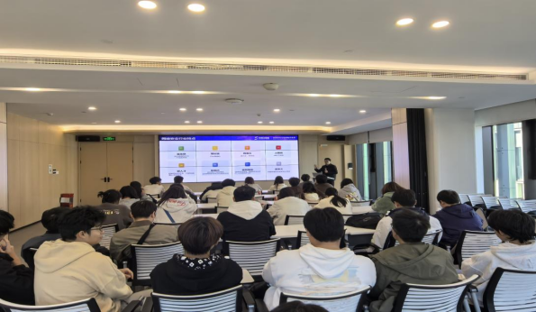 活动伊始,安恒信息讲解负责人热情接待了师生一行,通过企业宣传片与专题分享,系统介绍了公司的发展历程与核心实力。在专业知识分享环节,讲解负责人围绕网安行业核心领域展开深度解读,详细介绍了安恒信息聚焦的云安全、大数据安全、物联网安全、智慧城市安全及工业控制系统安全五大战略方向,以及数据安全、信创安全等细分领域的爆发式增长潜力,让学生直观感受到行业的广阔前景。