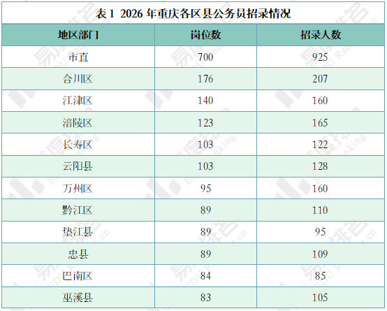 2026年1月15日,重庆市公务员局发布《重庆市2026年度考试录用公务员公告》,拉开了2026年重庆市公务员招录的序幕。