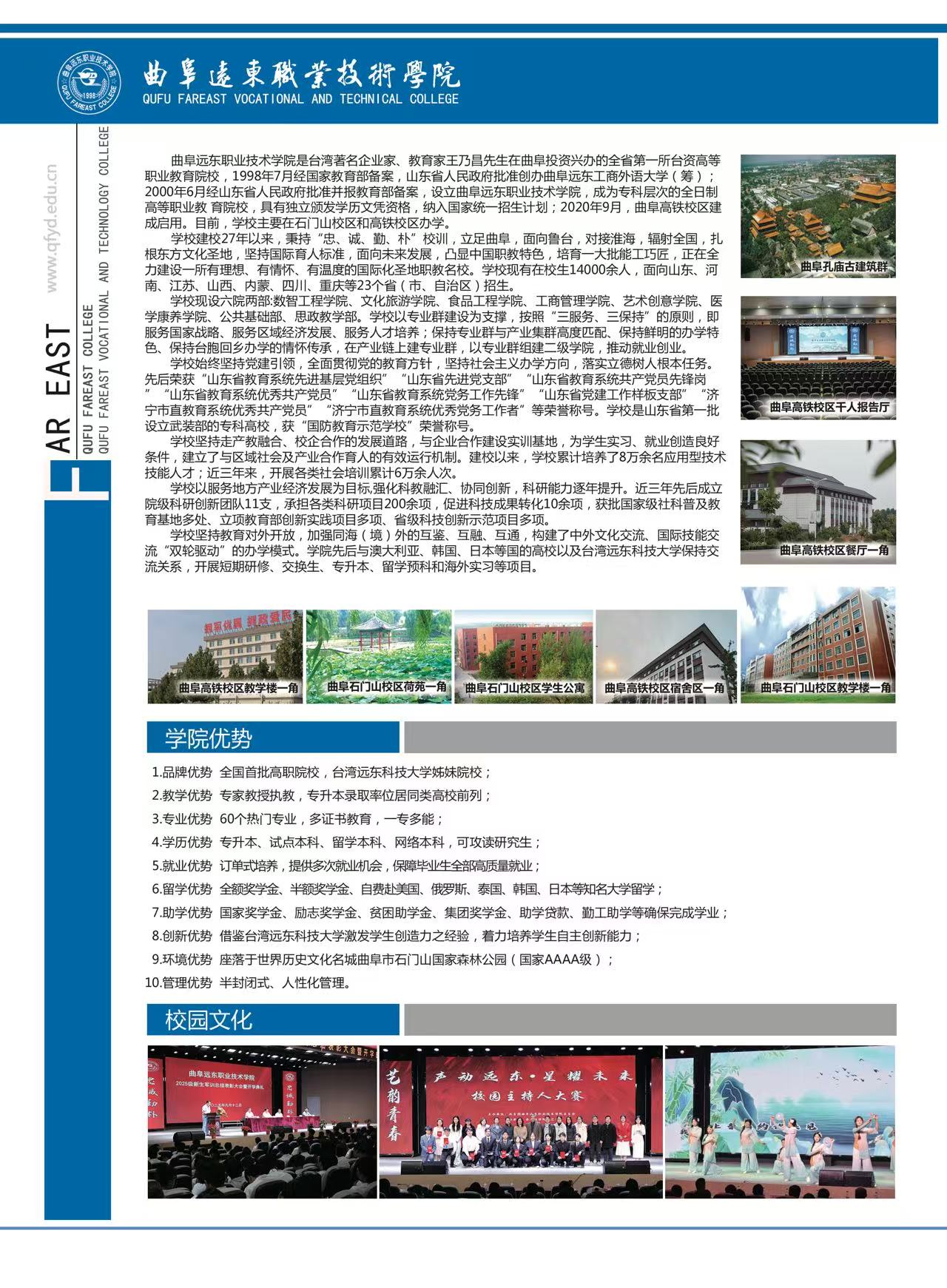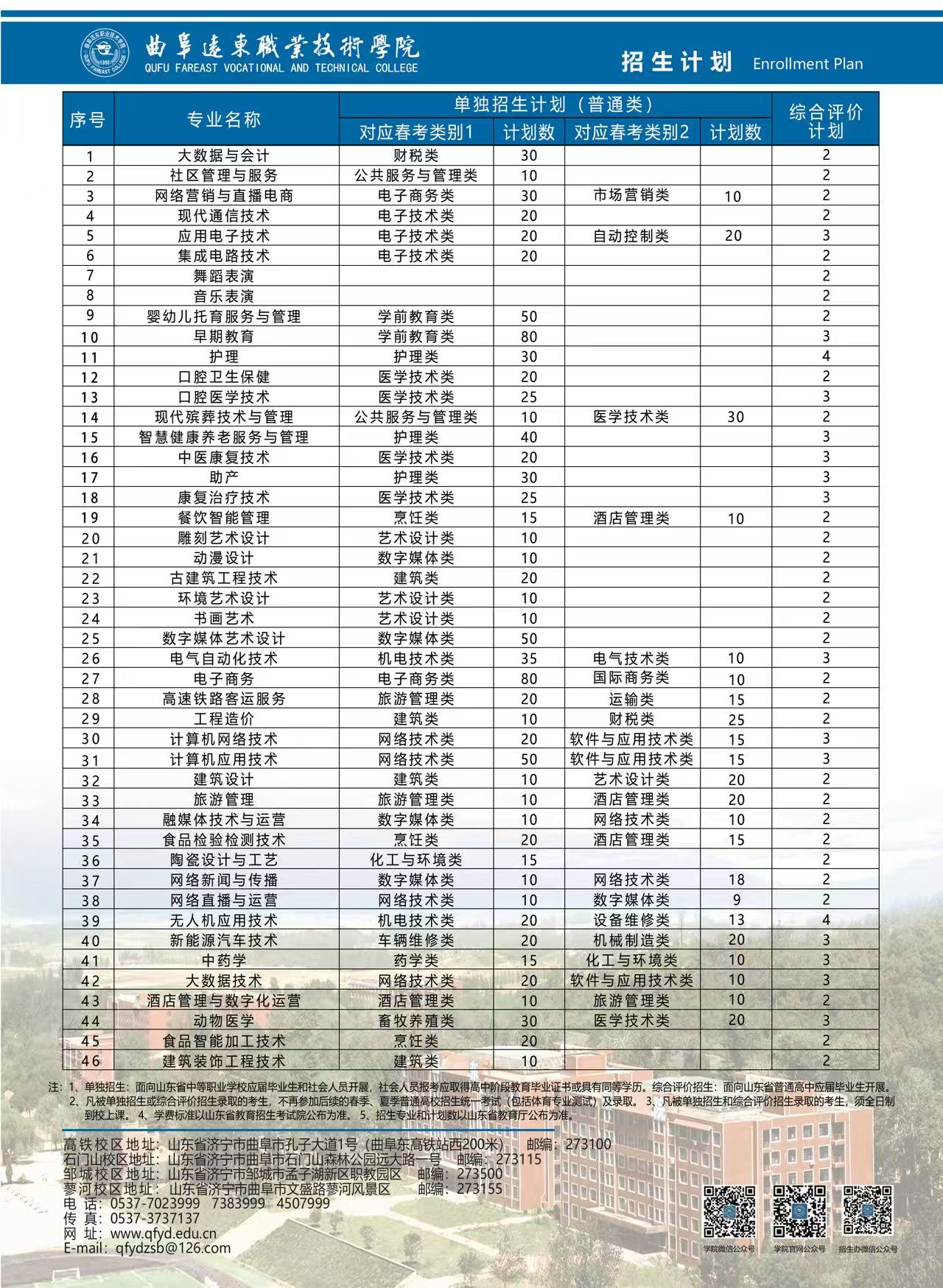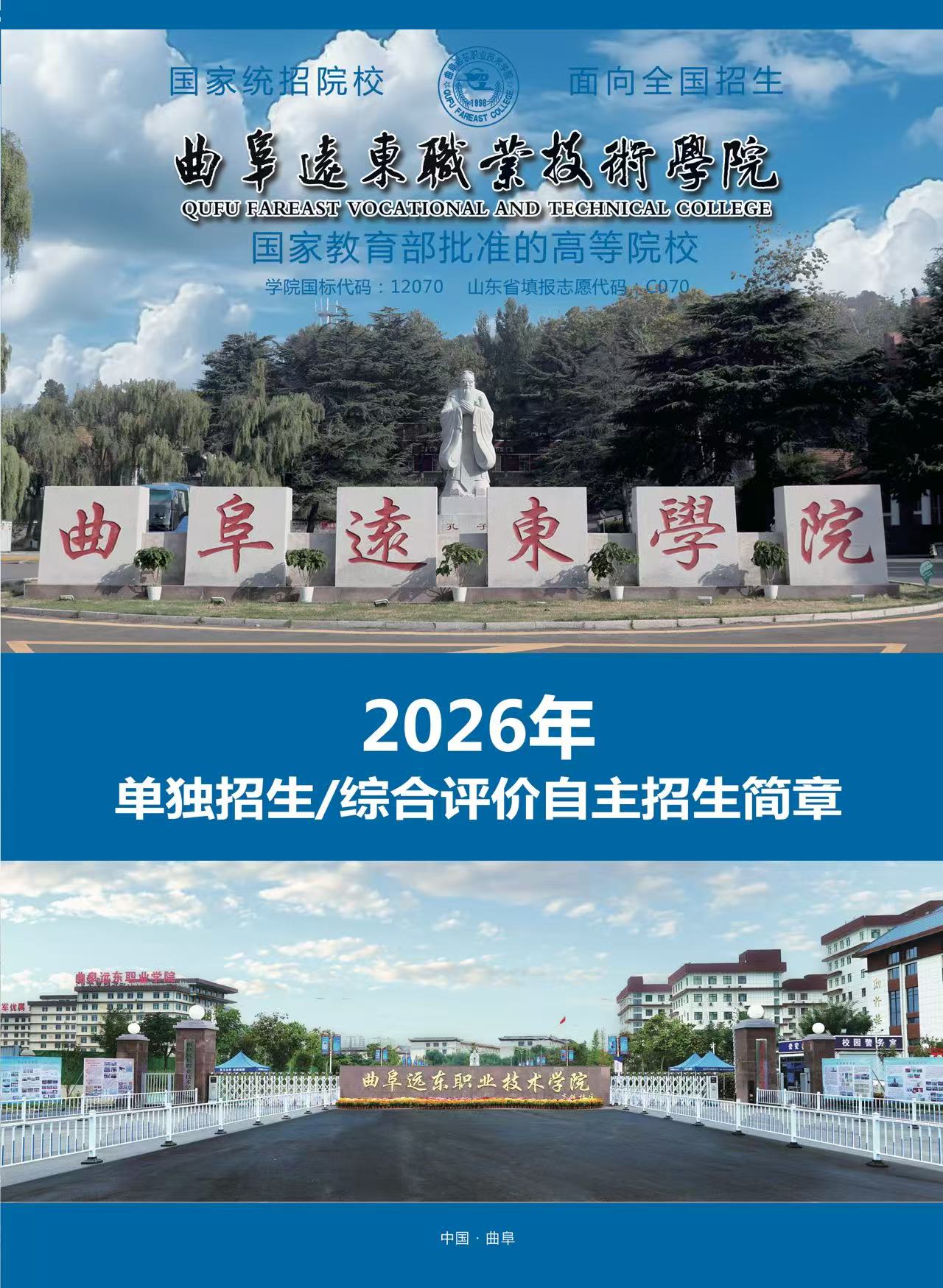 曲阜远东职业技术学院2026年单独招生、综合评价自主招生简章