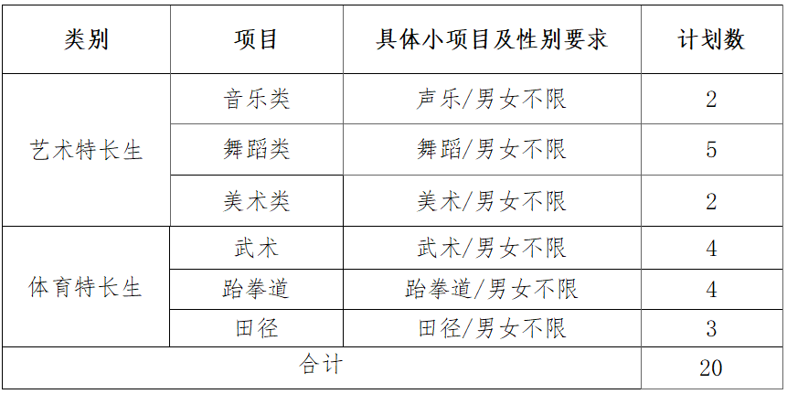 4.为保障生源质量,我校提前确定录取合格标准,合格标准为:艺术、体育特长生的职业技能测试成绩(专业测试成绩)满分为300分,合格标准为180分,未合格的不予录取。