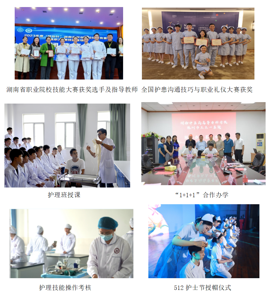 专业优势:护理专业创办于1959年,是中央财政支持的重点建设专业和株洲市特色专业。学院积极对接区域经济和社会发展需要,与中南大学湘雅护理学院、附属第一医院、株洲市人民医院、株洲市三三一医院、株洲市二医院共建智慧康养护理、中医护理、老年护理、康复护理等特色方向“1+1+1”人才培养基地。2019、2020年专业连续两年获评湖南省高职高专院校专业技能考核标准(含题库)优秀等次。专业教学质量高,学生在全国、省级各项护理技能、中医护理技能大赛中获奖50余项,2022年湖南省第八届“互联网+”大学生创新创业大赛获得三等奖,毕业生近年护士执业资格考试通过率97%以上,就业率95%以上,专升本通过率逐年攀升。