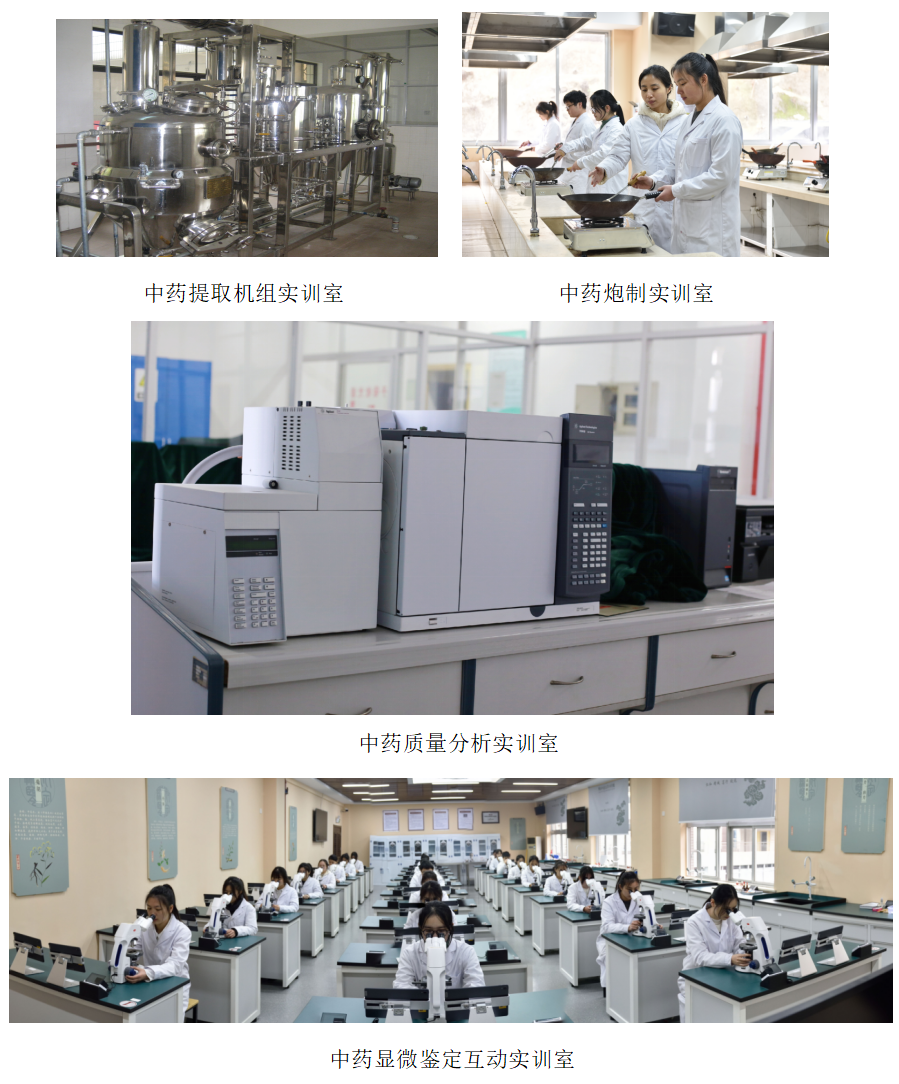 专业核心课程:中药化学实用技术、中药鉴定技术、中药炮制技术、中药制剂技术、中药制剂检测技术、中药制药设备、药品生产质量管理规范(GMP)实务、中药制药环保与安全课程等。