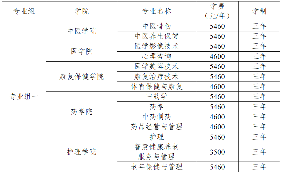 学校下设中医学院、医学院、康复保健学院、药学院、护理学院、马克思主义学院、公共课部、基础医学部8个教学院(部),开设有中医学、针灸推拿、中医骨伤、中医养生保健、临床医学、医学影像技术、心理咨询、中药学、药学、中药制药、药品经营与管理、药品质量与安全、护理、助产、智慧健康养老服务与管理、老年保健与管理、康复治疗技术、中医康复技术、医学美容技术、体育保健与康复20个专业。学校有直属附属医院1家,协作型附属医院3家,教学医院25家,校外实习实训基地150余家。