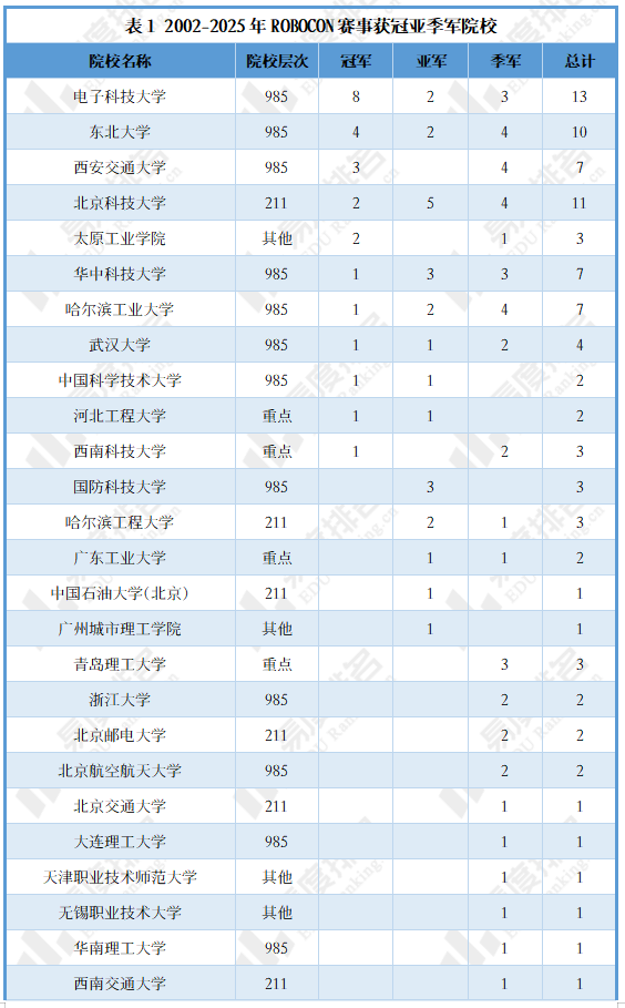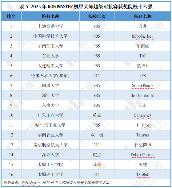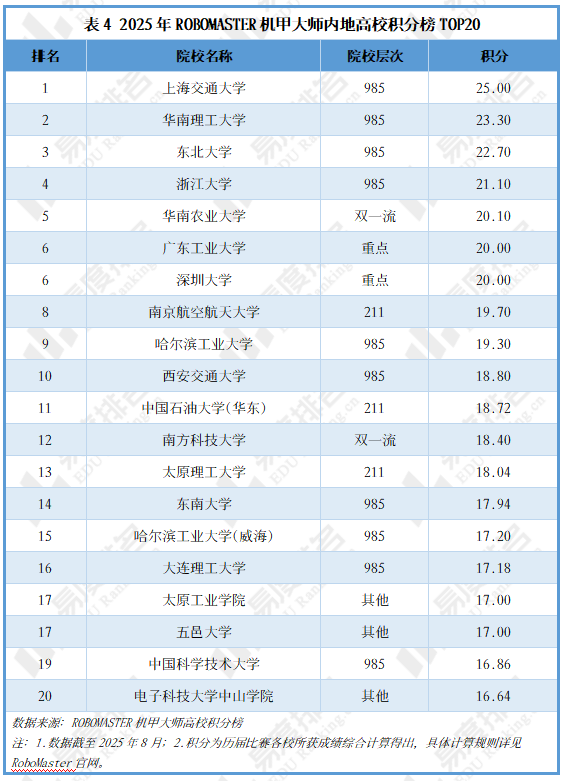 截至2025年8月,共有268所内地高校进入ROBOMASTER机甲大师高校积分榜,其中