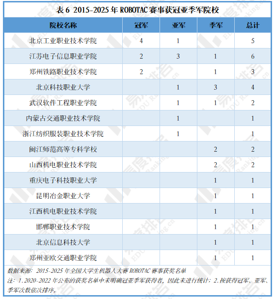 目前共有15所院校获得过前三名,其中