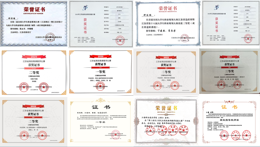 学生成果丰硕:推行“课赛证融合”人才培养模式,将课程教学、技能竞赛与职业资格认证有机衔接,构建全方位能力提升体系。2025年学生累计斩获各级各类技能竞赛奖项40多项,包括省职业院校技能大赛健身指导赛项、省职业规划大赛等;获取养老护理员、婴幼儿发展引导员等权威证书。双证加持强化就业核心竞争力。