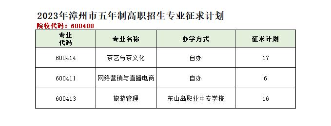 【五年制】2023年漳州市五年制高职招生专业征求计划