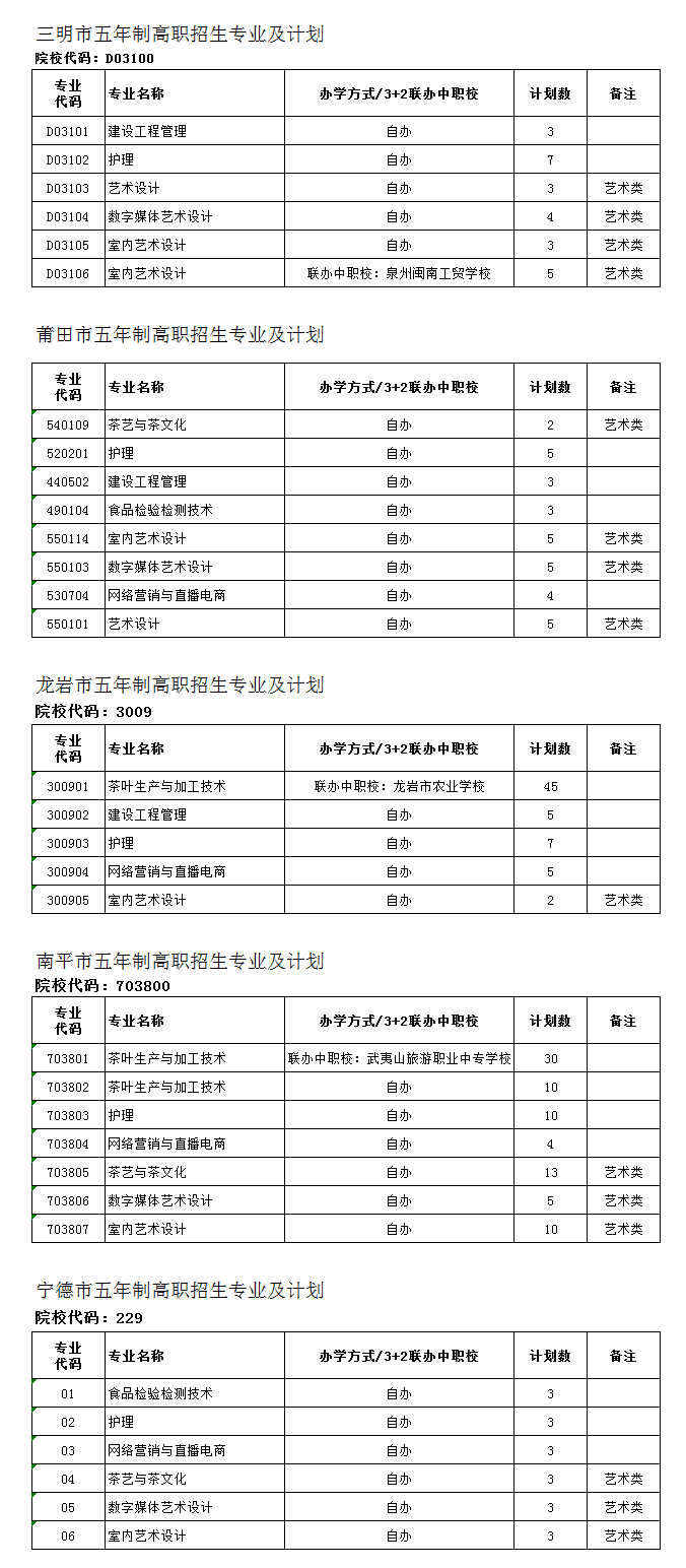 【五年制】2021年五年制高职招生专业及计划