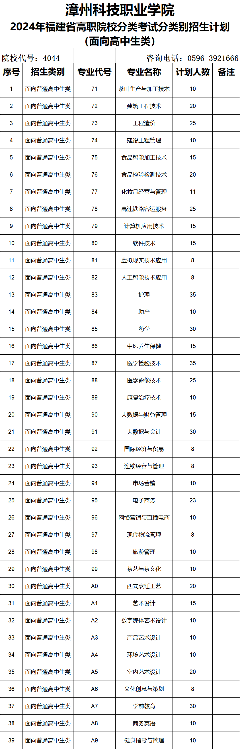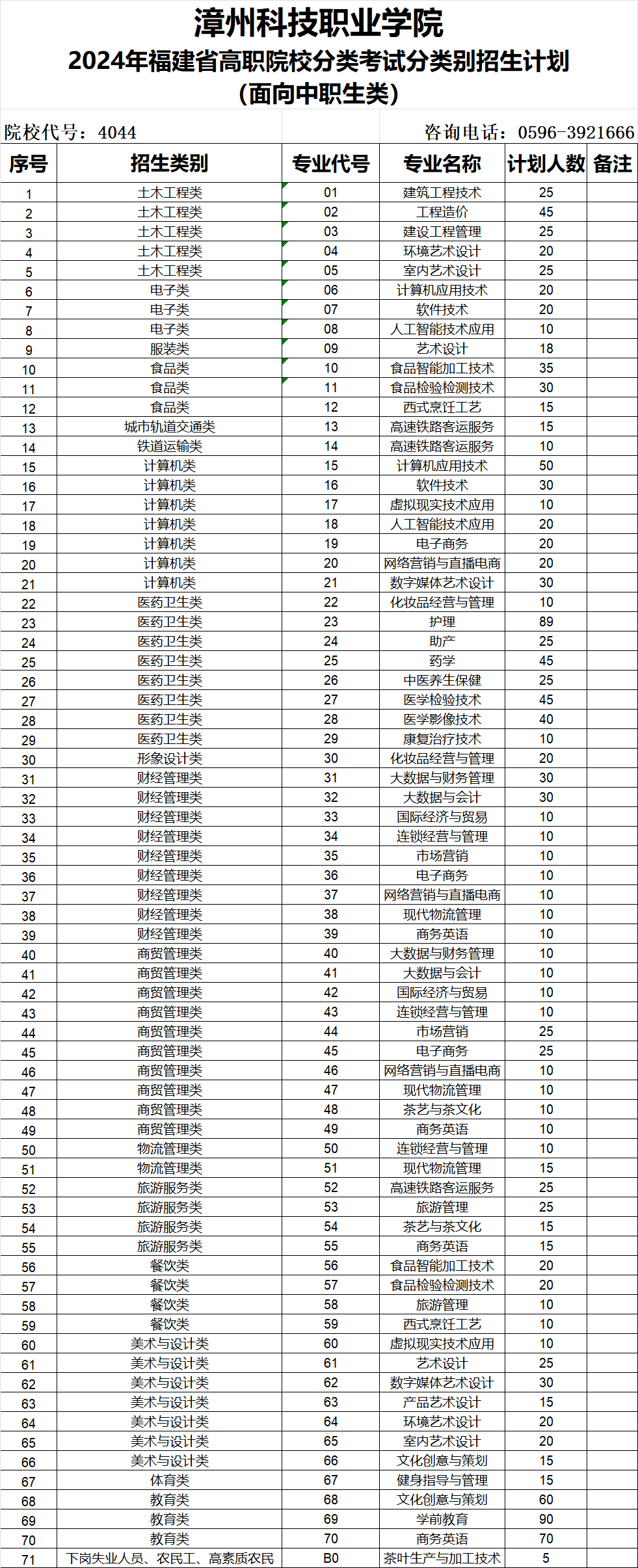 【高职分类】2024年福建省高职院校分类考试分类别招生专业及计划