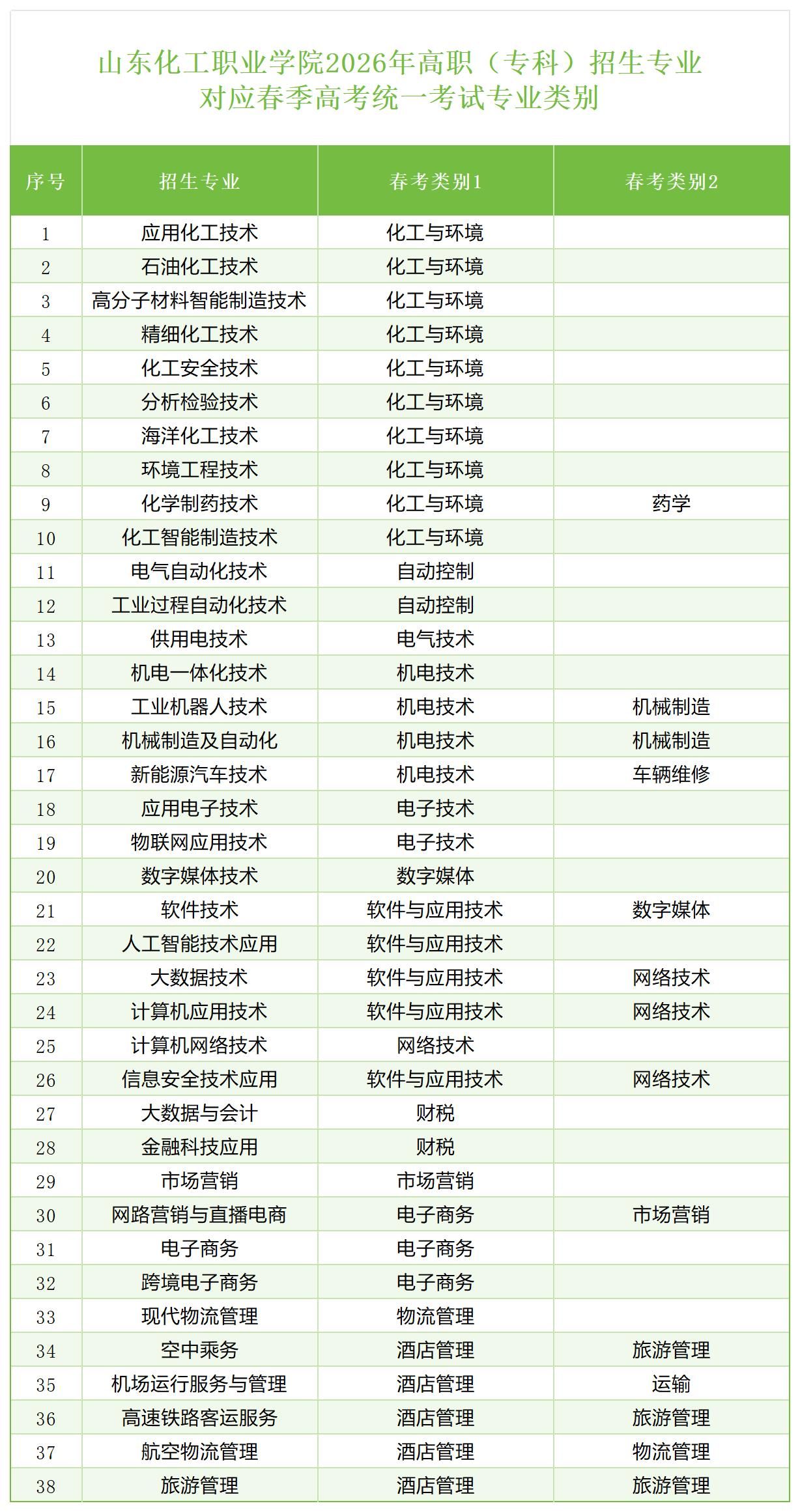 2026年高职(专科)招生专业对应春季高考统一考试专业类别