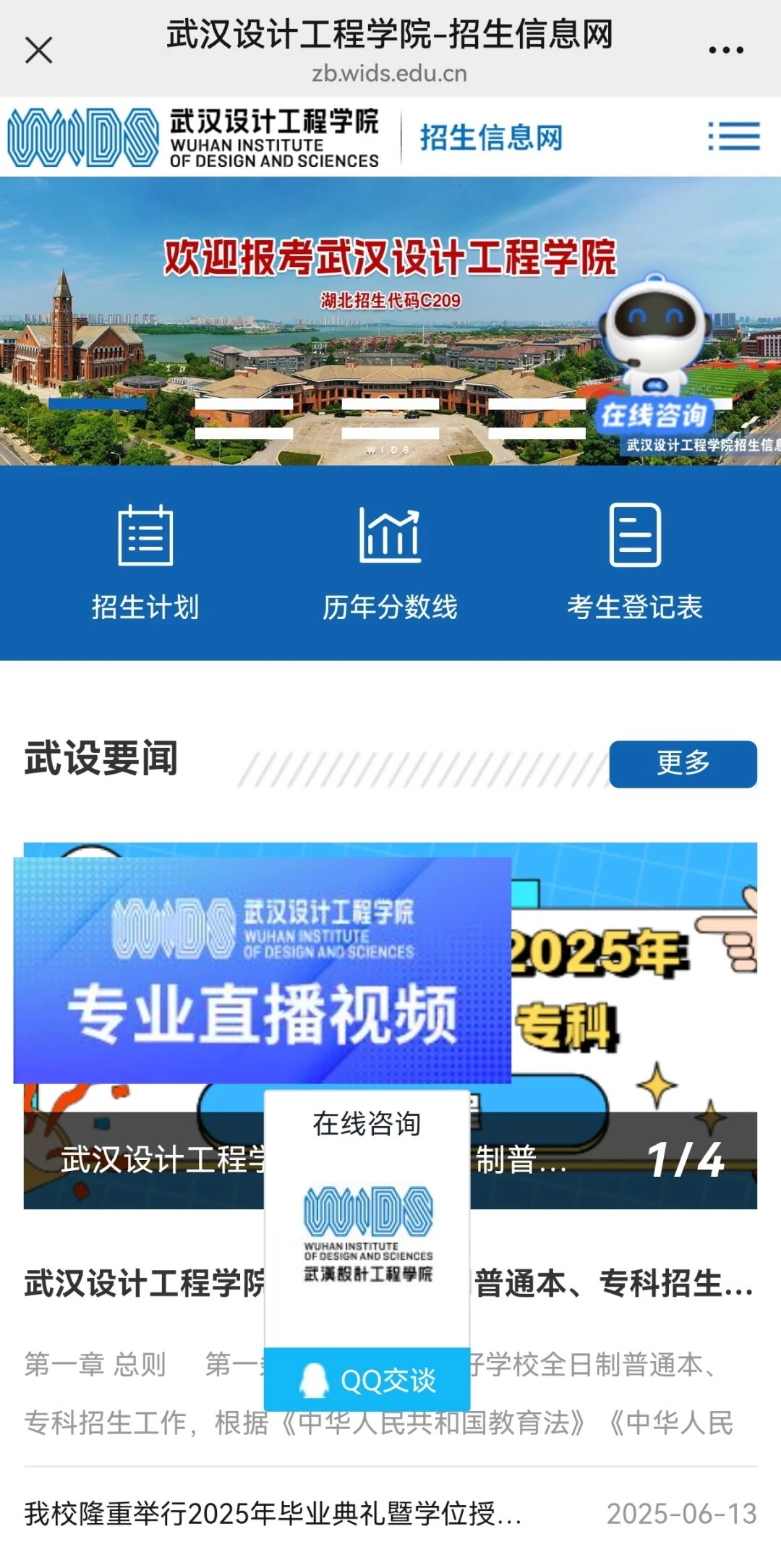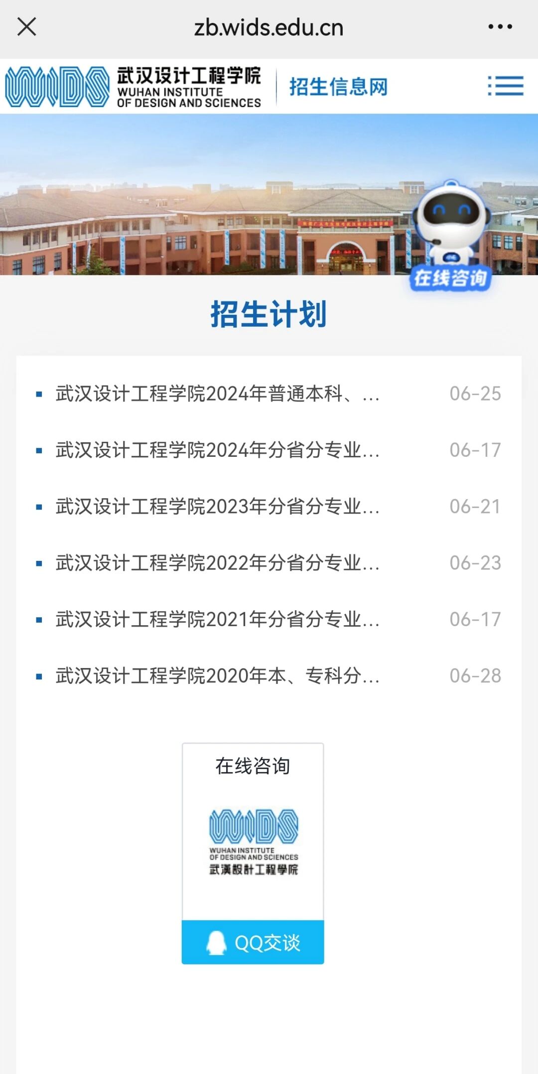 为帮助考生和家长更全面地了解武汉设计工程学院,我们开通了线上公众平台咨询与学院官方QQ群,获取最新招生资讯,我们在线等你来交流!