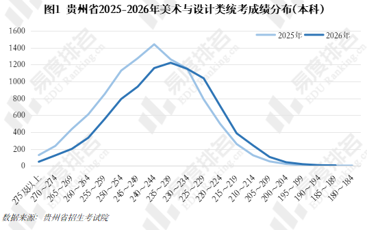 近日,贵州省招生考试院发布了《贵州省招生考试院关于公布2026年普通高校招生艺术类专业省级统考各专业合格分数线及专业成绩的通告》及《贵州省2026年普通高校招生艺术类专业省级统考本科合格分数段统计表》。本文主要对贵州省艺术类各类别统考本科合格线及美术与设计类统考成绩分段表进行分析。