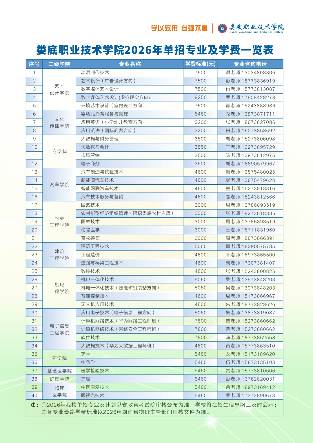 娄底职业技术学院2026年单招简章