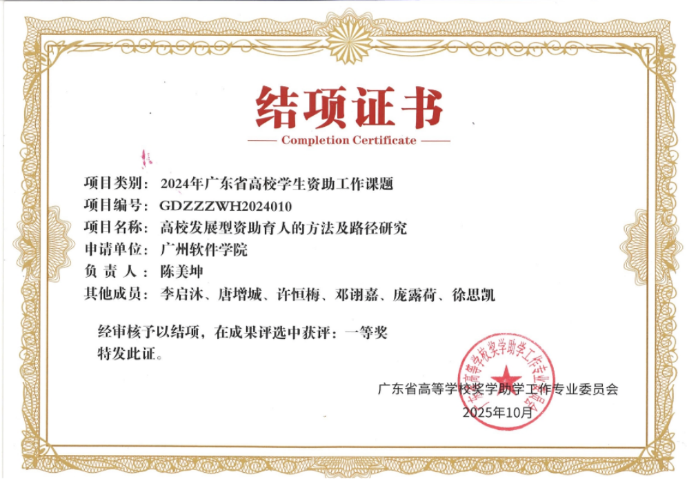 时光为卷,奋斗作笔。当2025年的篇章缓缓合拢,回望广州软件学院资助育人的足迹,我们所书写的,远不止是一组组精准的数据,更是一部关于育人的生动叙事,是一段段生命被看见、被尊重、被赋能之后,所绽放出的无限可能。此刻,让我们共同展开这幅由责任与深情绘就的资助育人画卷吧。