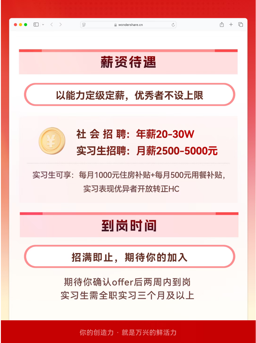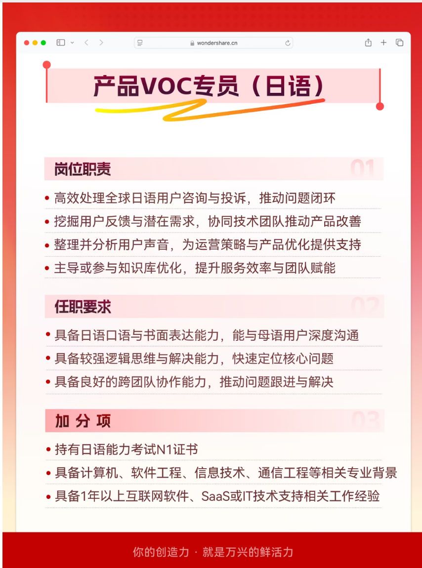 📢小兴带着“急招情报”走来啦!本期“抢人最快”、Offer率超高的岗位是——产品VOC专员!🔥 为什么说这是一趟“Offer直通车”?1️⃣ HC充足,流程高速,就等对的你上车!2️⃣ 节奏完美,年前投递、年后入职,无缝开启新程!3️⃣ 岗位稀缺,既懂用户、又懂数据、还能推动产品体验升级的复合型人才,正是团队急需的核心力量!抓紧两步走:1️⃣ 立即投递,抢占高Offer率席位2️⃣ 转发给身边合适的产品伙伴👏小兴在兴家等你,一起把用户心声,变成产品掌声!