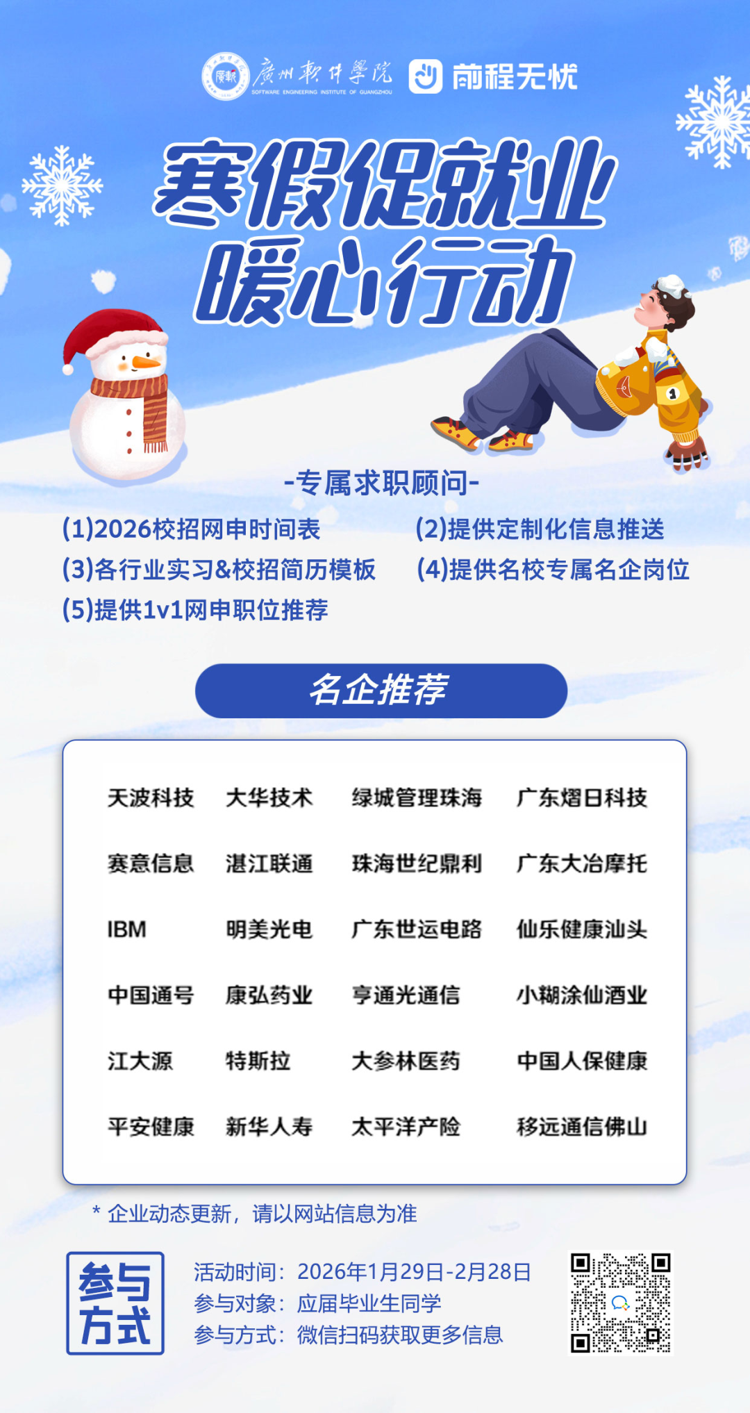寒假如约而至,梦想步履不停。当冬日的暖阳洒满校园,我们也迎来了这场满载关怀与期许的“寒假促就业暖心活动”。毕业的钟声虽未敲响,但求职的征途已然开启 —— 我们深知,每一位怀揣理想的学子,都渴望在寒冬中握到一束照亮前路的光;每一份跃动的简历背后,都藏着对未来的无限憧憬。