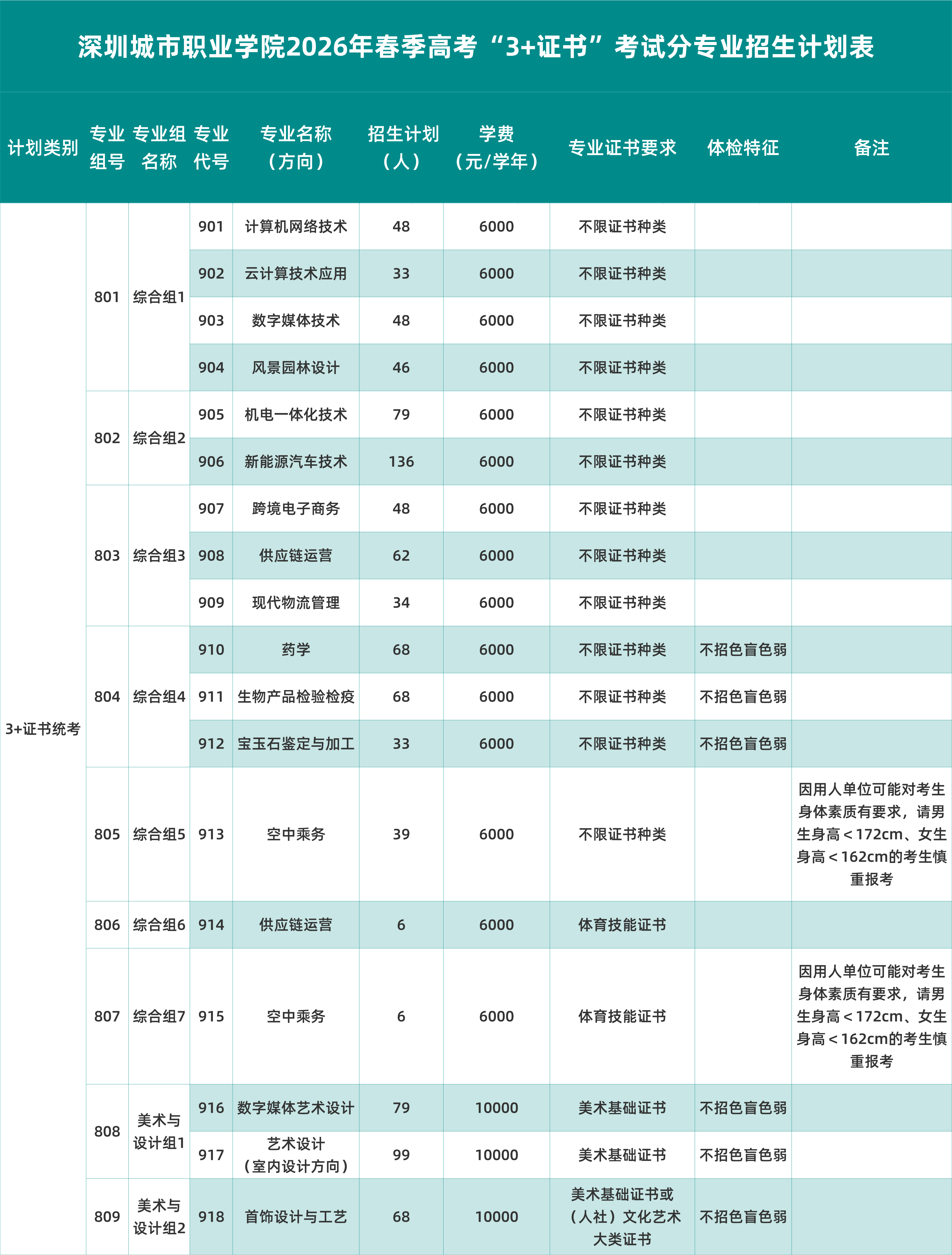 6.以上招生专业、计划数、体检特征要求等及其他备注以广东省招生办公布的专业目录为准。