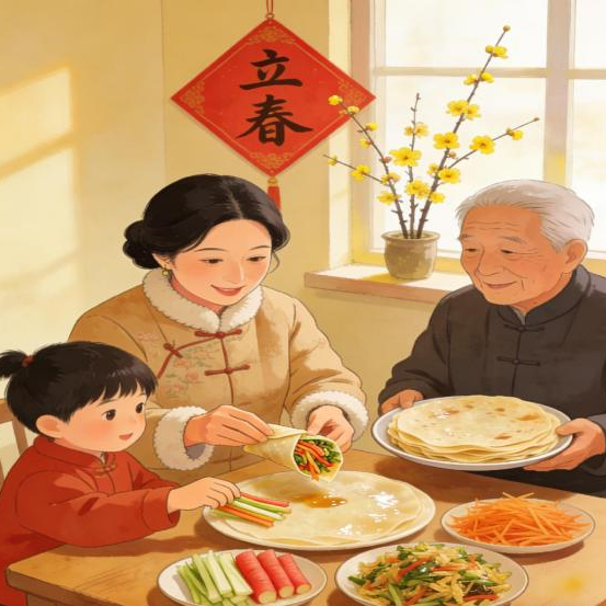 咬春是立春经典食俗,主要通过食用春饼、萝卜等应季食物迎接新春,象征祈福纳吉。该习俗最早见于唐代,明代明确将嚼萝卜称为“咬春”。南北食俗有别,北方多以薄饼卷“盒子菜”为主,南方衍生出油炸春卷形态。