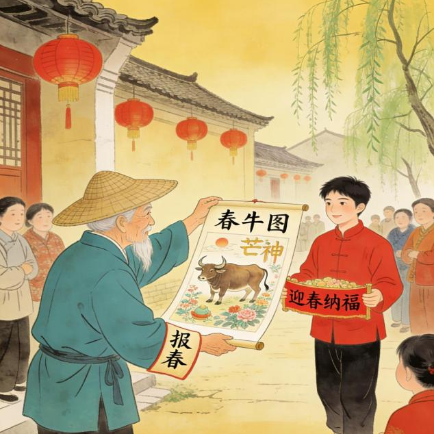 打春是立春核心民俗,又称鞭春牛,旧时在立春前日以桑木为架、冬至后辰日取土制成春牛,立春日以红绿鞭抽打,寓意祈求五谷丰登,宋代已有相关记载。
