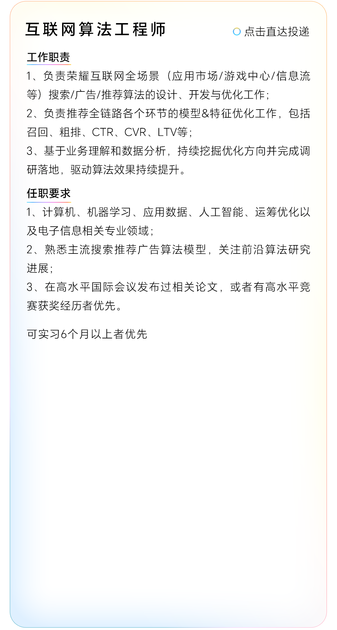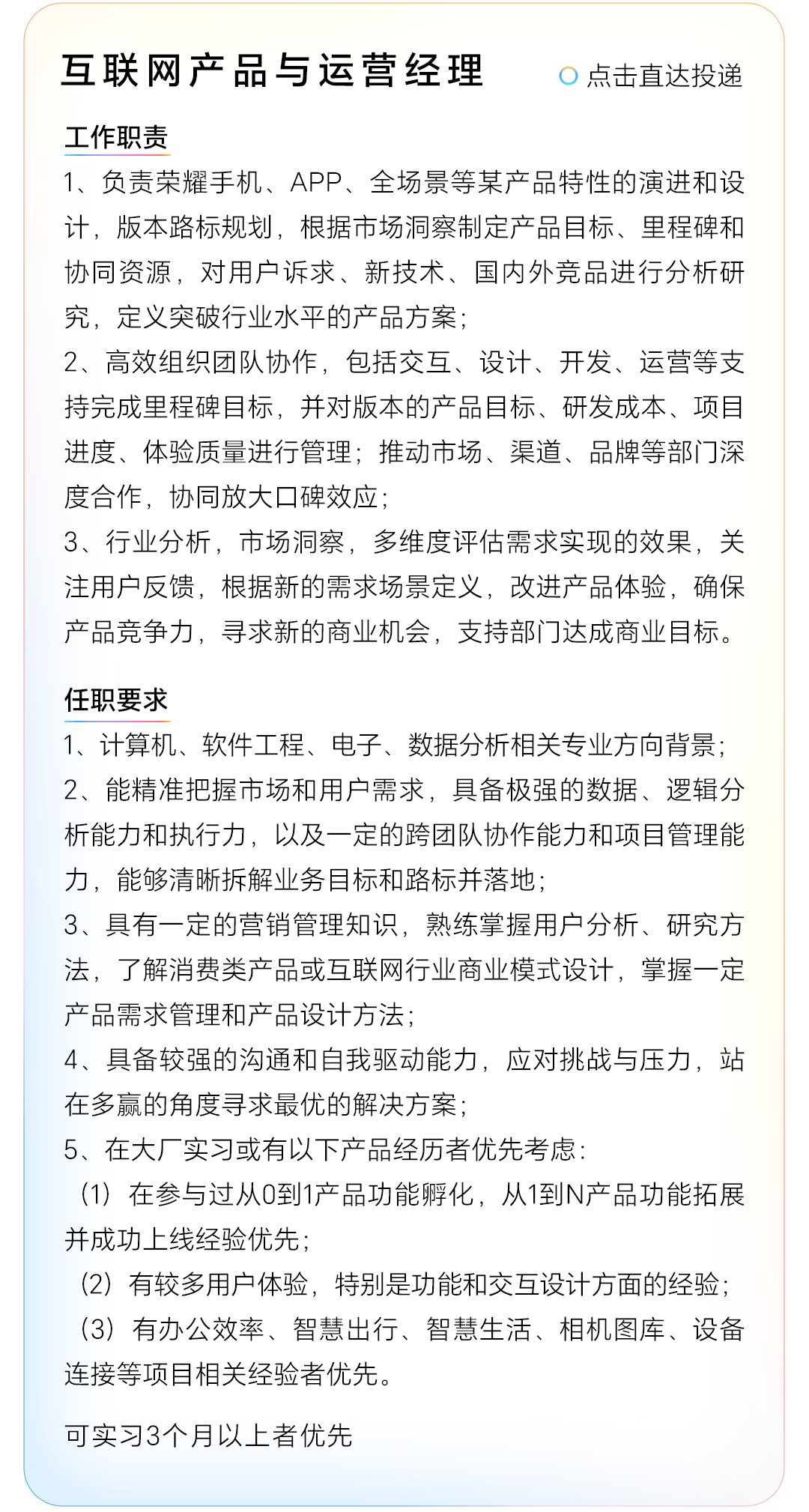 转自:荣耀HONOR招聘