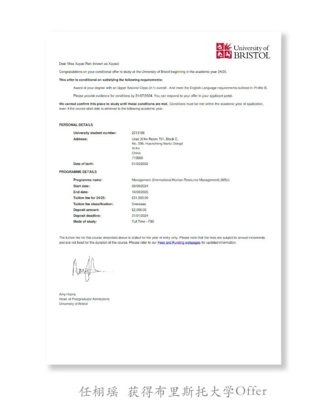 任栩瑶,2020级工商企业管理专业(3+1+1国际班)学生,中共预备党员,高中毕业于瑞安龙翔高级中学。2024年9月入读世界顶尖学府布里斯托大学(2026年QS 排名55),攻读国际人力资源管理硕士学位。她不仅是学业奖学金的屡次获得者,更是在跨文化适应、学术突破与家国情怀的深层互动中,展现出新时代青年学子的精神风貌与价值追求。她的成长轨迹,是一条从语言困境到自信表达、从课堂边缘到思维中心的奋进之路,也是一次跨越山海,在历史与现实的对话中,完成自我认知与责任体认的精神远征。