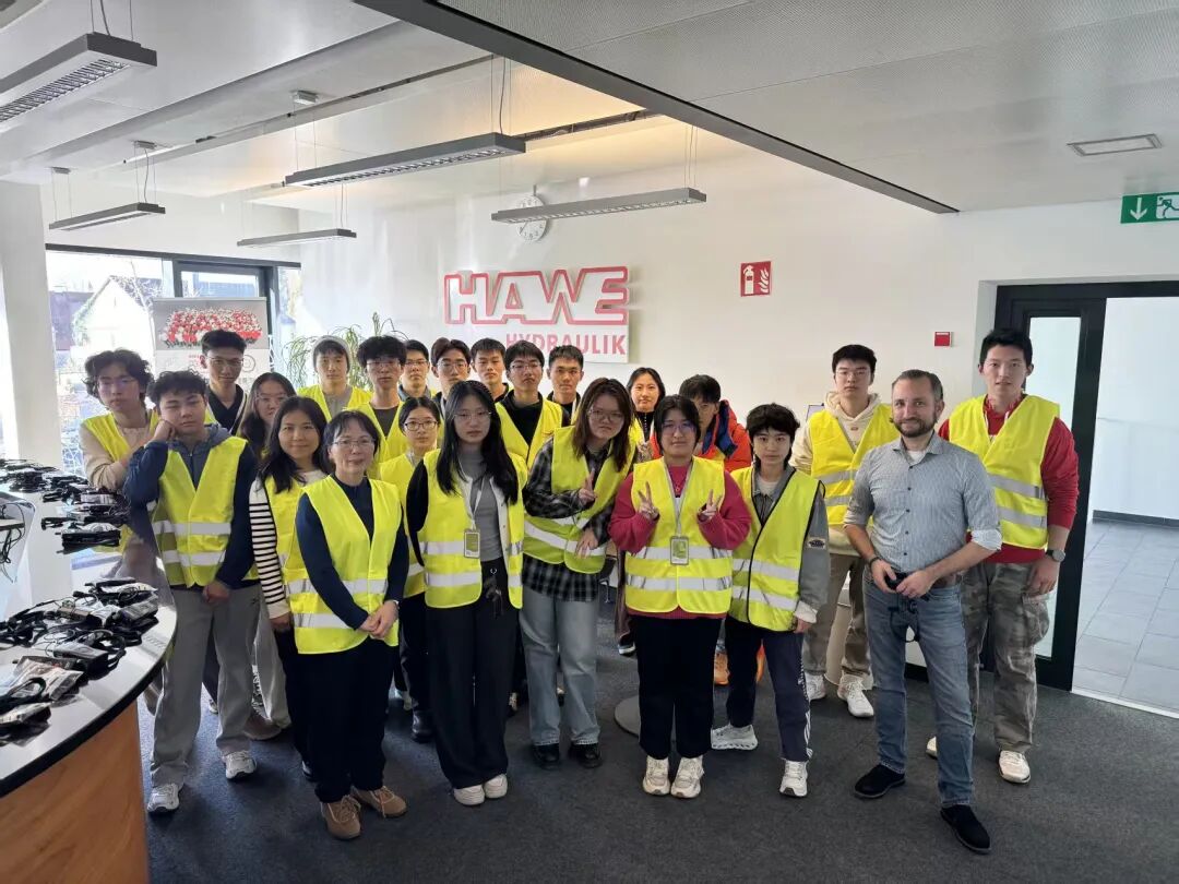 在企业参访环节,研学团走进德国液压技术领军企业,深入生产现场调研智能产线调度与AI系统的协同流程。通过与企业技术专家的深度交流,学子们系统了解了从技术研发到生产管理的全链条运作逻辑,不仅直观印证了课堂所学知识,更对国际化行业人才的需求标准形成了精准认知。