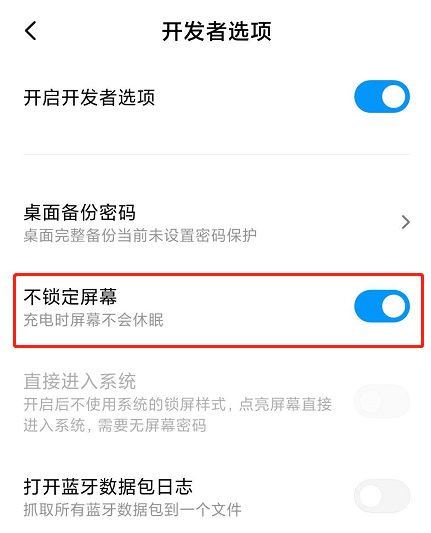 (2)安卓设备:安卓手机需先开启“开发人员选项/开发者选项”,由于每个品牌机型的开发者选项操作步骤不同,请自行百度搜索本人手机品牌的开发者选项如何开启。开启开发者选项后,在开发者选项内,开启“不锁定屏幕(充电时屏幕不会休眠)”。