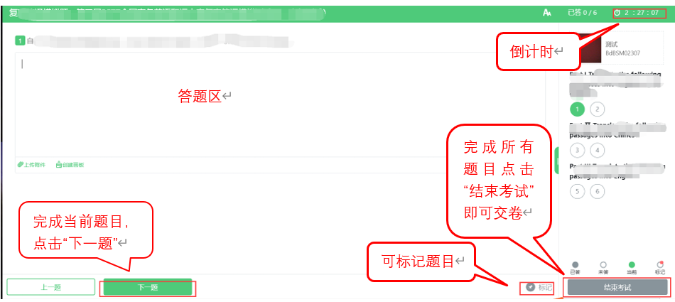 (3)考试界面会显示考试剩余时间;