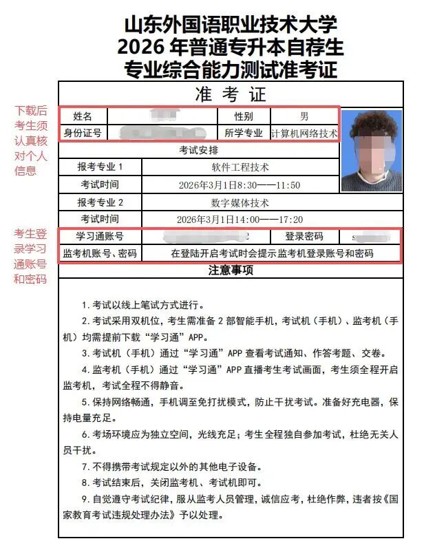 为保障我校2026年专升本自荐生专业综合能力测试顺利进行,现将有关事宜通知如下: