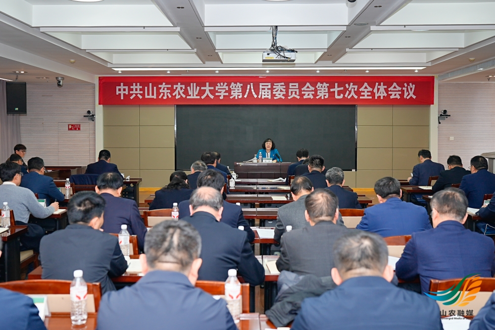 山农融媒2月27日讯中共山东农业大学第八届委员会于2026年2月27日召开第七次全体会议,全会坚持以习近平新时代中国特色社会主义思想为指导,全面贯彻落实党的二十大和二十届历次全会精神,深入贯彻习近平总书记关于党的建设的重要思想、关于树立和践行正确政绩观的重要论述和视察山东重要讲话重要指示精神,认真落实省委、省政府工作部署,审议《中国共产党山东农业大学第八届委员会常务委员会2025年度工作报告》《中共山东农业大学委员会关于深入贯彻党的二十届四中全会精神凝心聚力、加压奋进,坚决打赢“双一流”突破攻坚战的决议》,党委书记张然在会上作了讲话。
