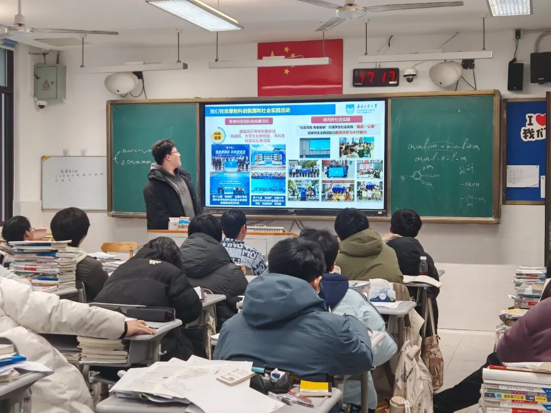 当我看到学弟学妹们在结束后举手向我询问大学生活与我的求学经历,甚至主动讲起对南工大的向往与追求时,这一切都使我深感荣幸。饮水思源,我愿化作桥梁,让更多苏州实验中学的学子了解南工大,选择南工大,在这片充满创新活力的热土上书写青春。