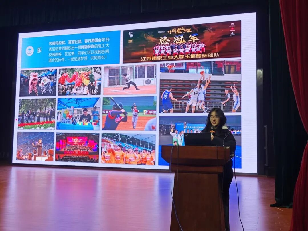 02队长曹誉文分享道:宣讲当日,面对台下那些闪烁着好奇与憧憬的目光,我仿佛看到了一年前的自己。我以一名“新鲜出炉”的学姐视角,讲述了从高中到大学的过渡与蜕变,包括如何适应自主学习、如何选择感兴趣的社团、如何在更大的平台寻找方向等。当我展示南工大在材料、化工等领域的国家级科研平台照片、分享我校学子在“互联网+”“挑战杯”赛事中摘金夺银的故事时,我看到了学弟学妹们眼中被点燃的光。