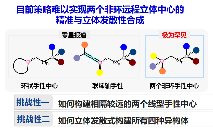 而现实中的药物分子往往不只“一只手”,可能同时拥有两只、三只甚至更多“手”,这些“手”还不挨着,彼此之间隔着一段距离。过去,要精准地摆好这些“手”的方向,往往需要多道复杂的合成步骤,既费时又难以保证每一步都准确无误。