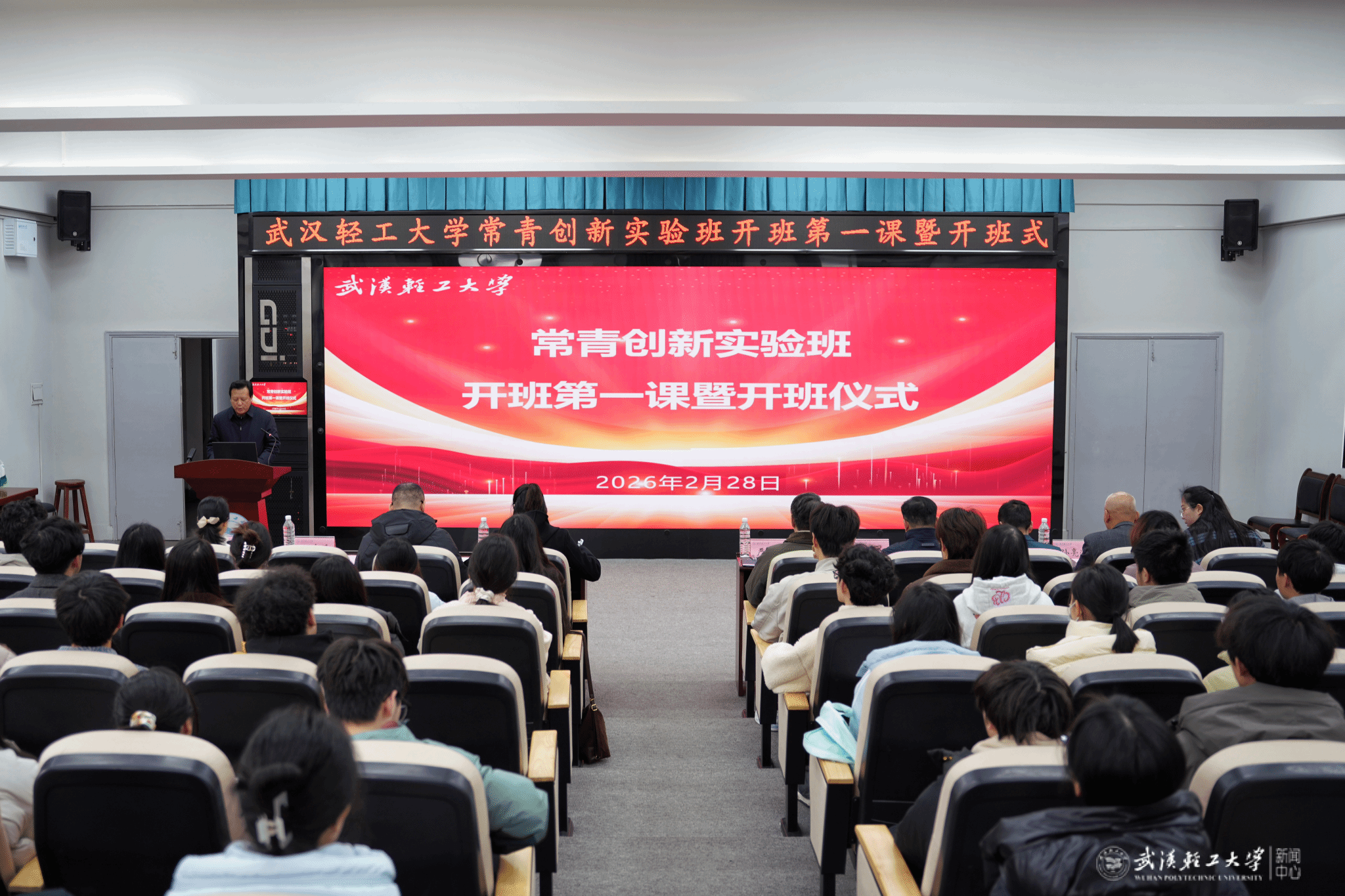 本网讯2月28日,我校首届常青创新实验班开班第一课暨开班仪式在积学楼209室举行。校党委书记、常青创新实验班首任班主任严冀钢出席活动并为学生授课。学校党政办、学工部(处)、教务处、校团委、创新创业学院相关负责人及全体实验班学生参加活动。