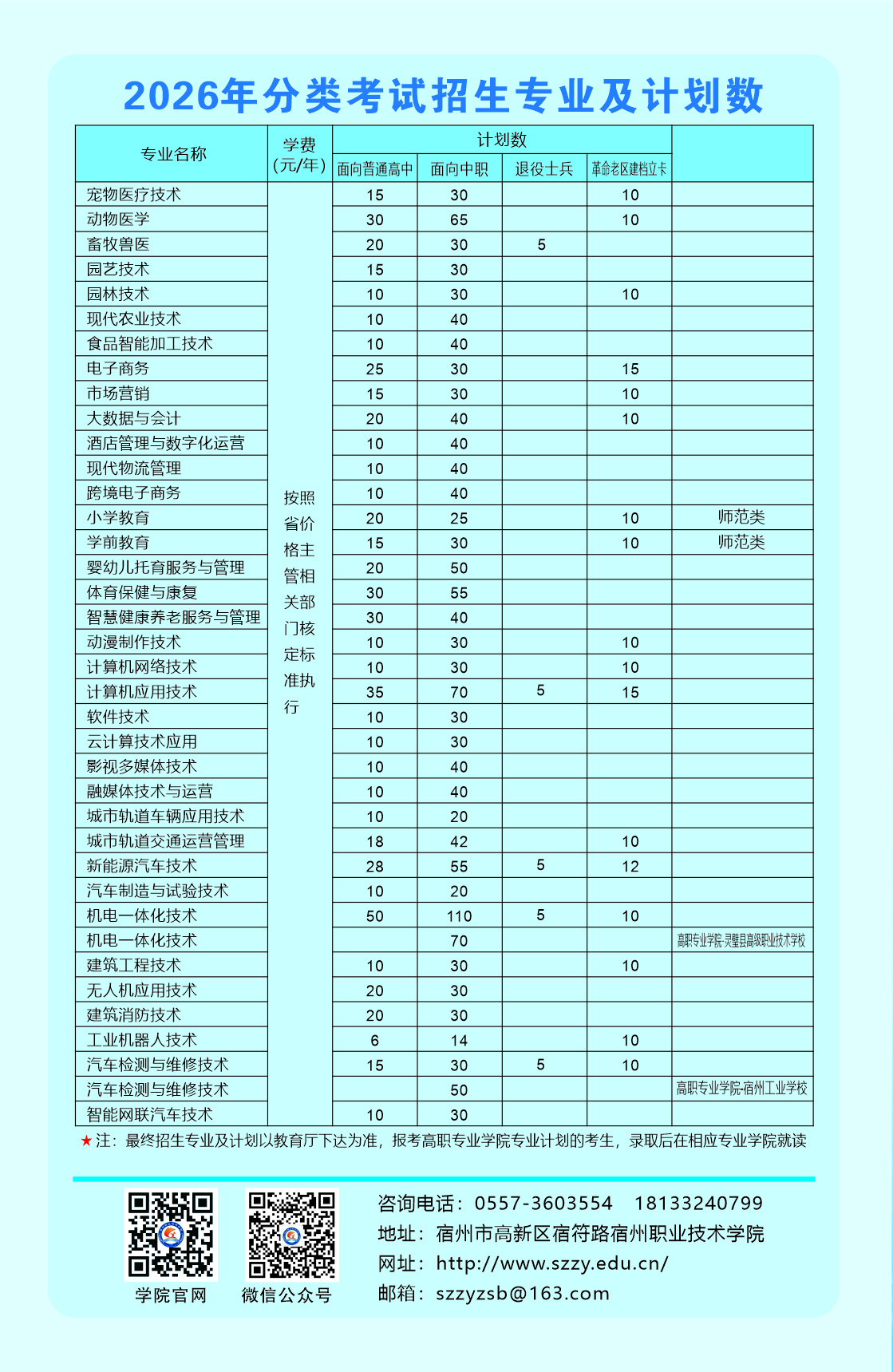 宿州职业技术学院2026年分类考试招生章程