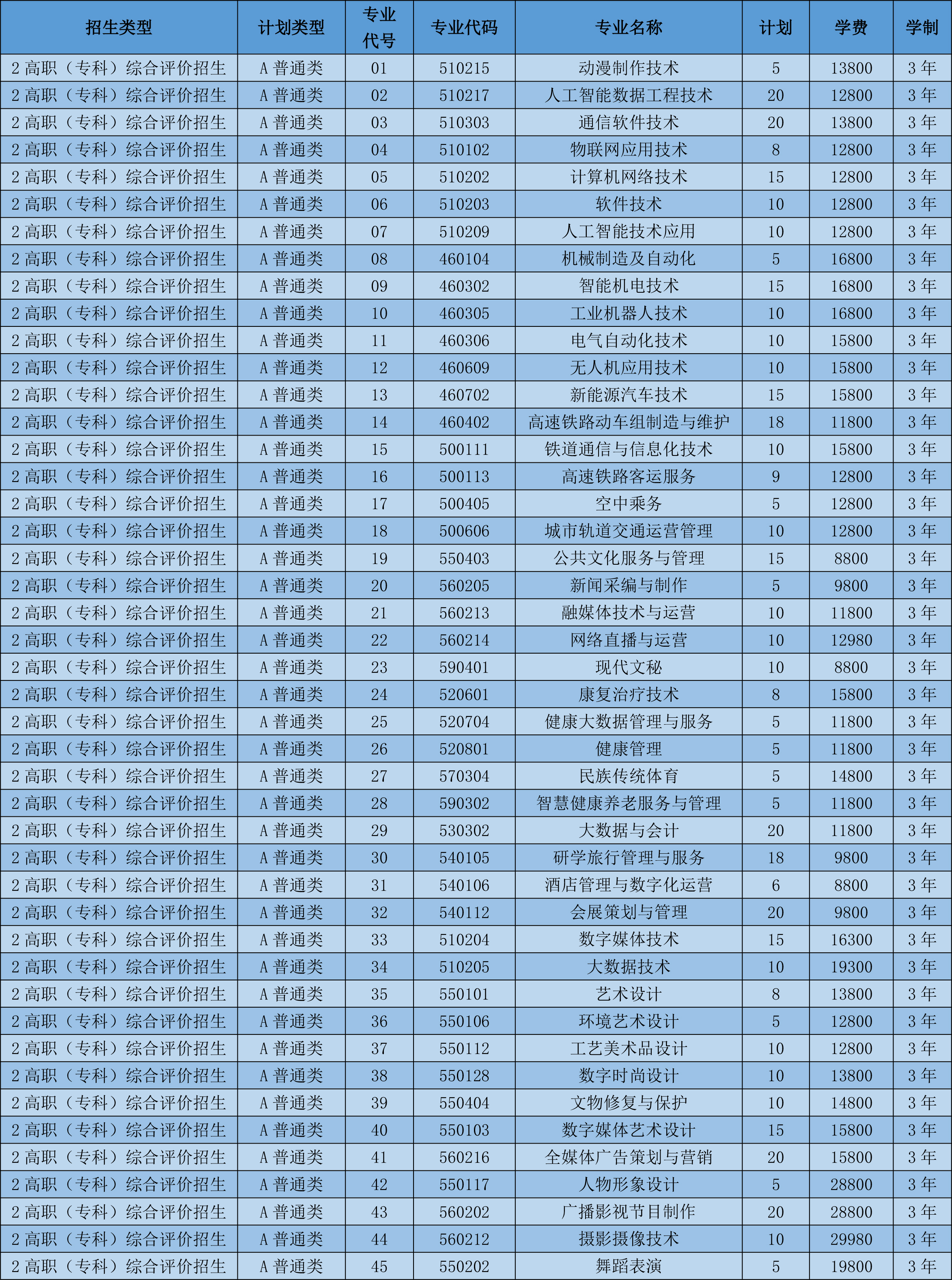 2026年单独招生和综合评价招生专业设置一览表