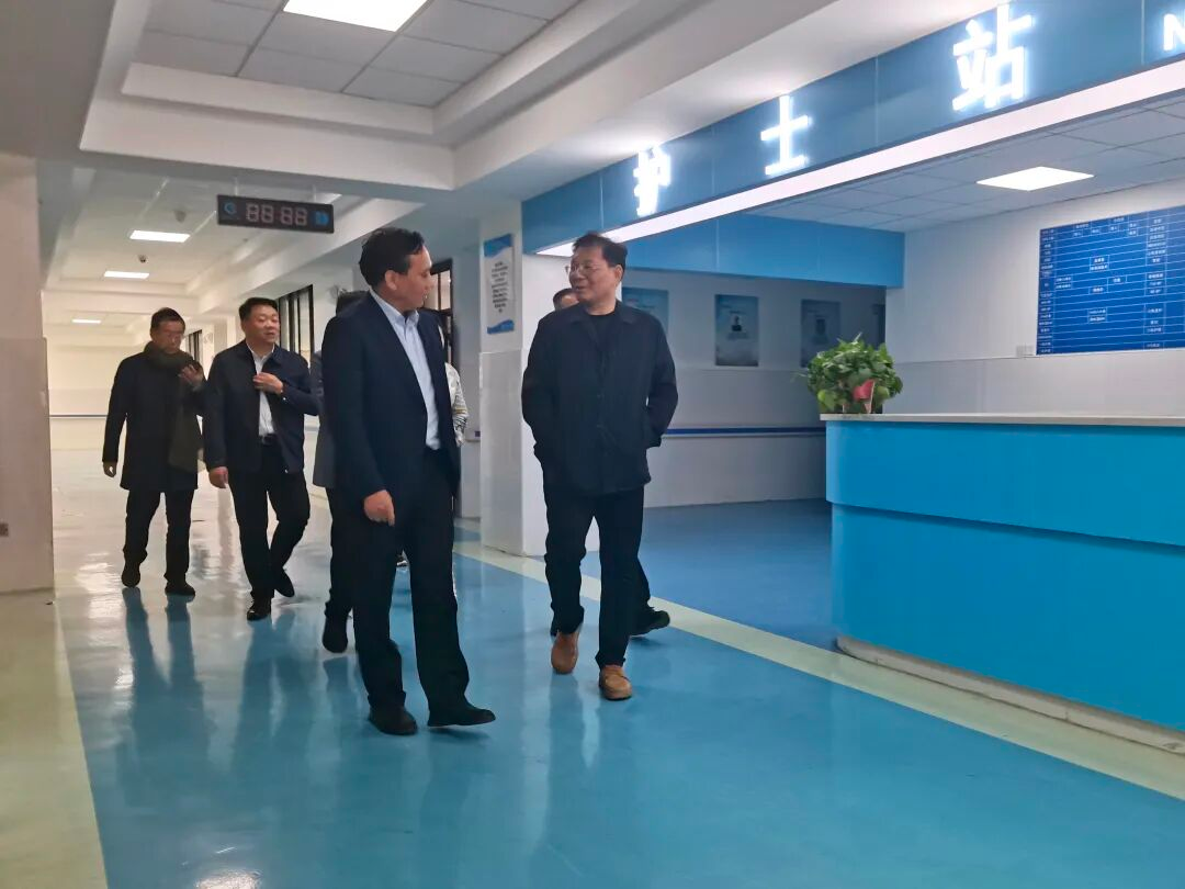 湖南省民政厅蒋建华(右一)一行参观我校健康护理学院,指导我校养老专业建设工作