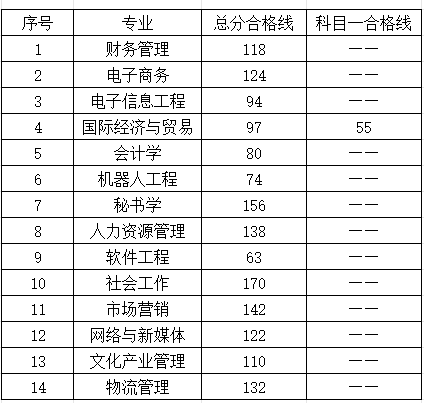 二、各专业合格线: