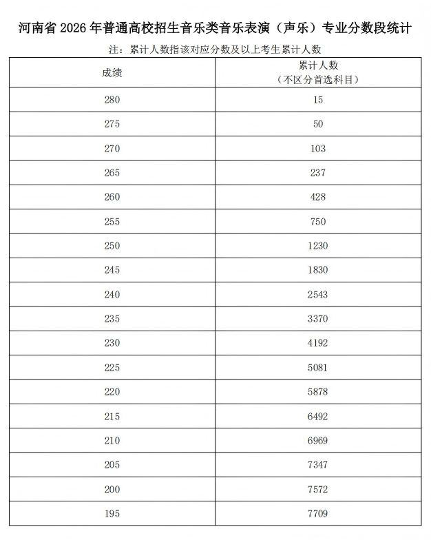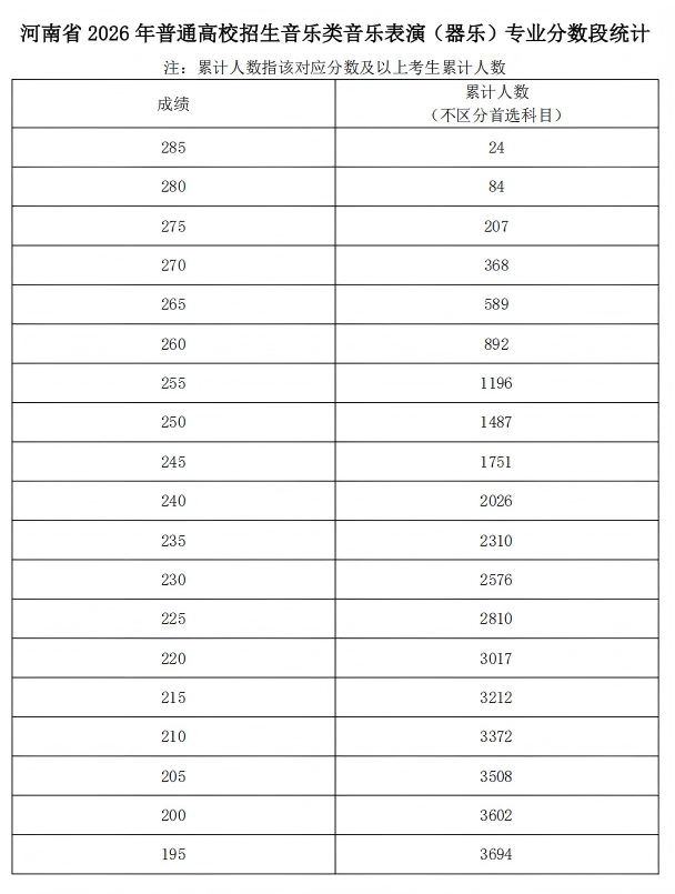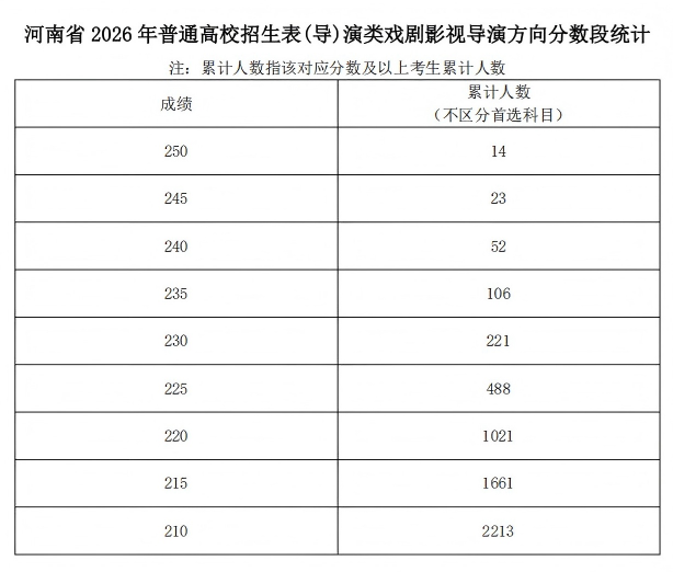 河南省2026年普通高校招生艺术类专业省级统考舞蹈类、播音与主持类、音乐类和表 (导)演类戏剧影视表演及戏剧影视导演方向专业合格线