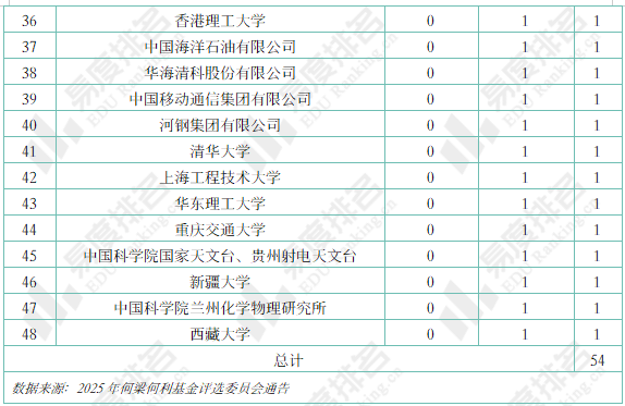 2025年度获奖人共计54位,来自48家工作单位