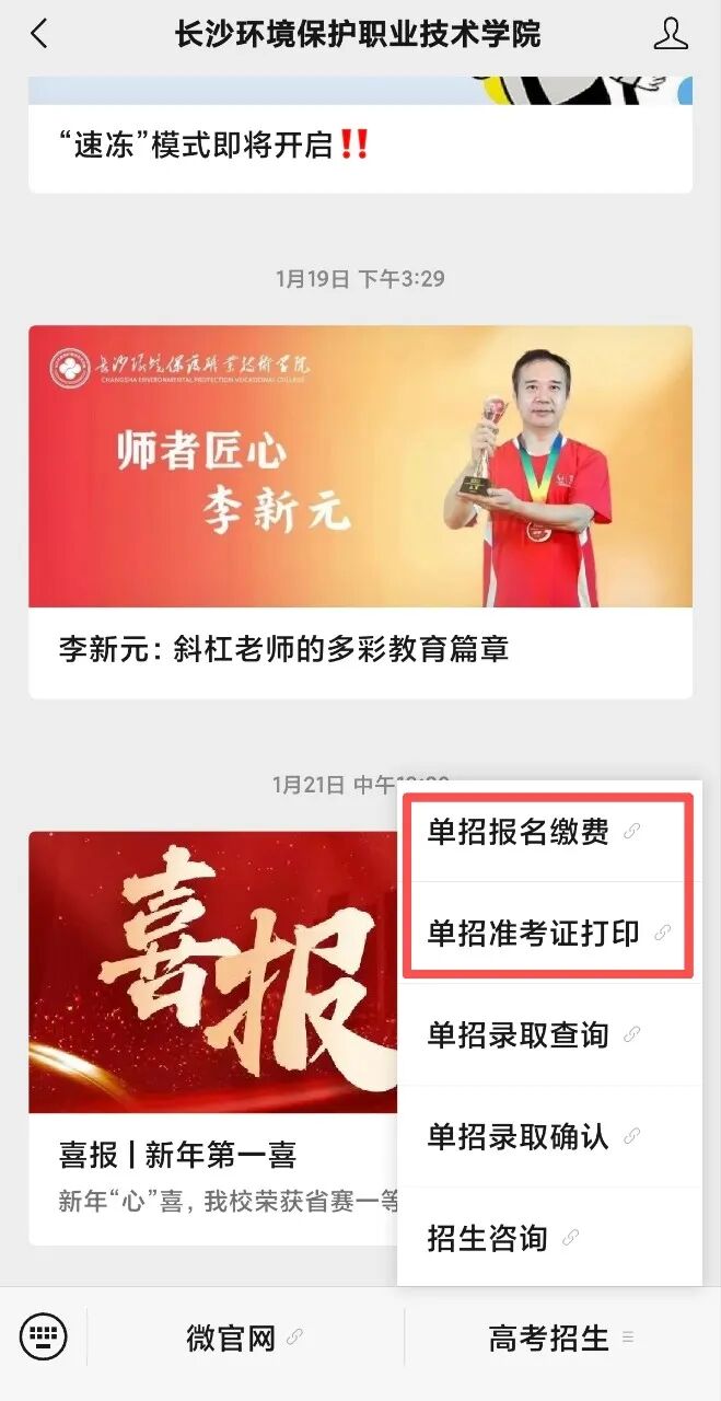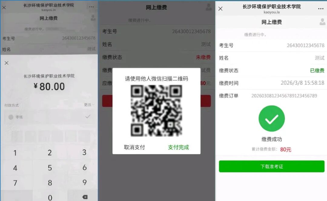 长沙环境保护职业技术学院2026年单独招生考试缴费及准考证打印具体操作如下: